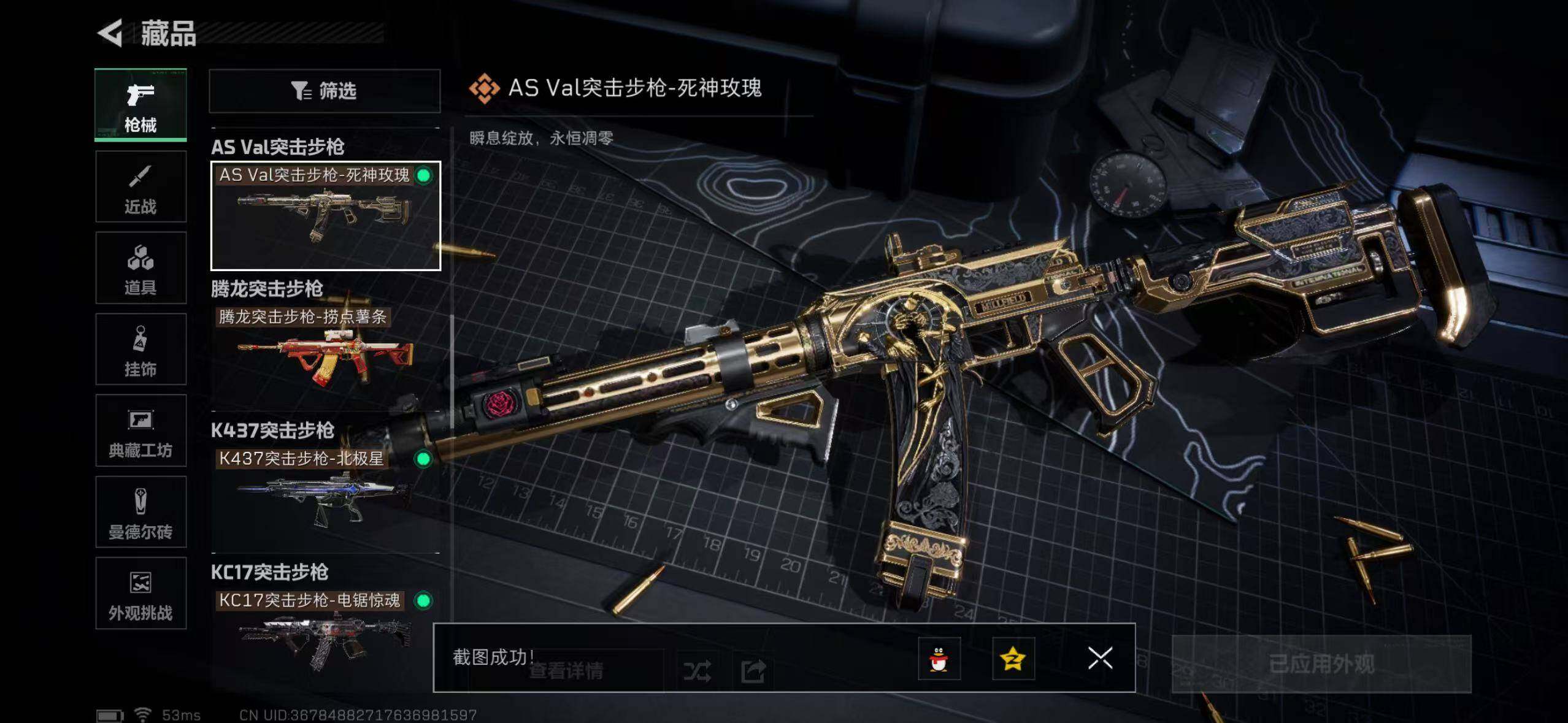【传说外观】:M4A1突击步枪-阿米娅,ASh-12战斗步枪-鹅鸭杀,M16A4突击步枪-狩猎时刻,SG552突击步枪-运