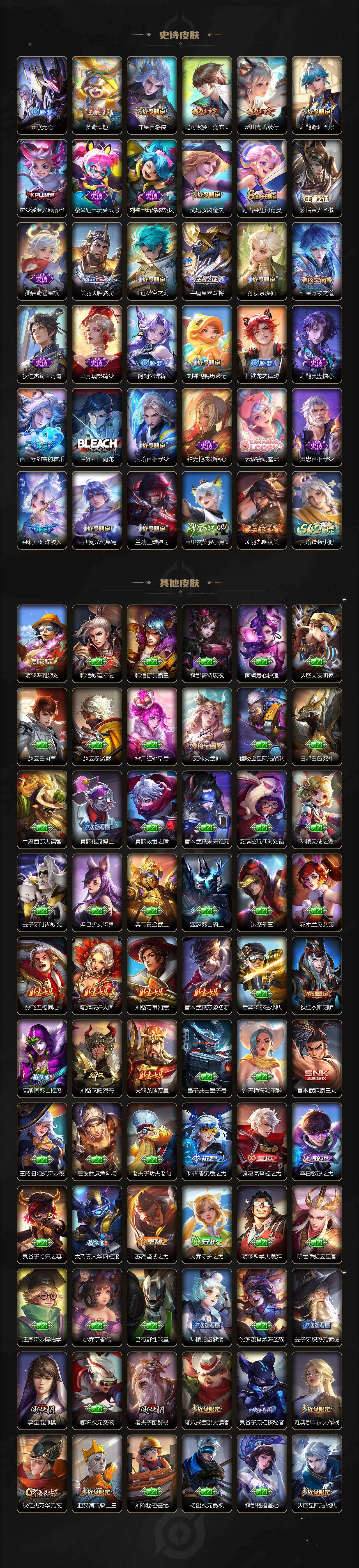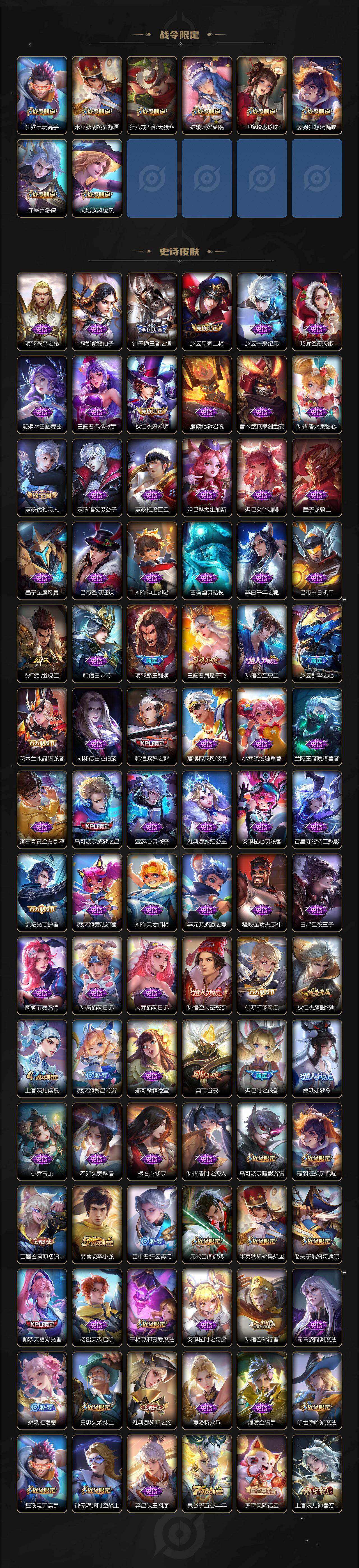 【英雄全皮】:刘禅全皮,司马懿全皮,娜可露露全皮,戈娅全皮,空空儿全皮