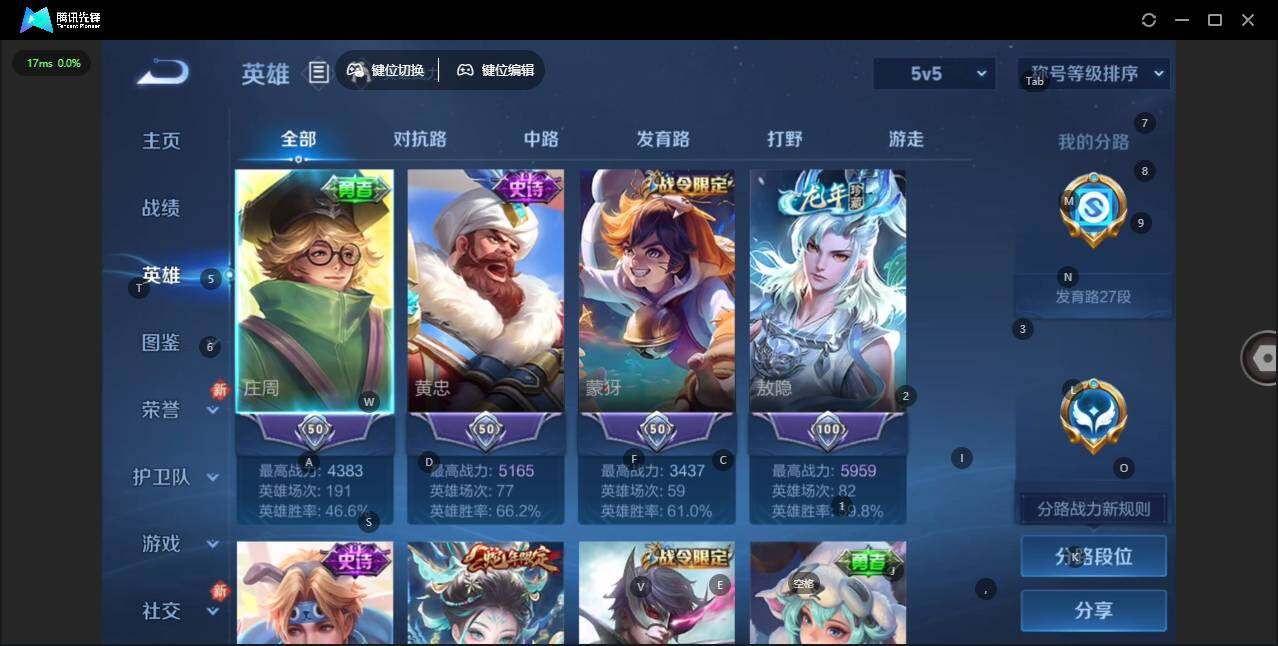实名: 可修改 贵族等级: V6 英雄数: 128 皮肤数: 194 传说皮: