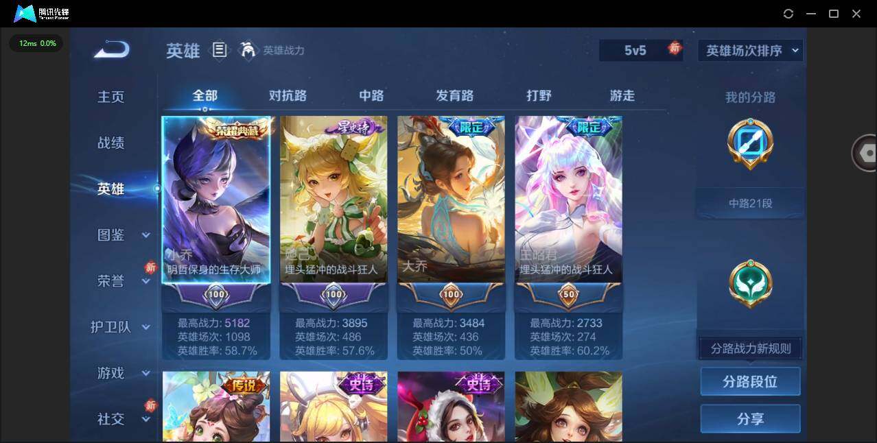 实名: 可修改 贵族等级: V8 英雄数: 126 皮肤数: 189 荣耀水晶