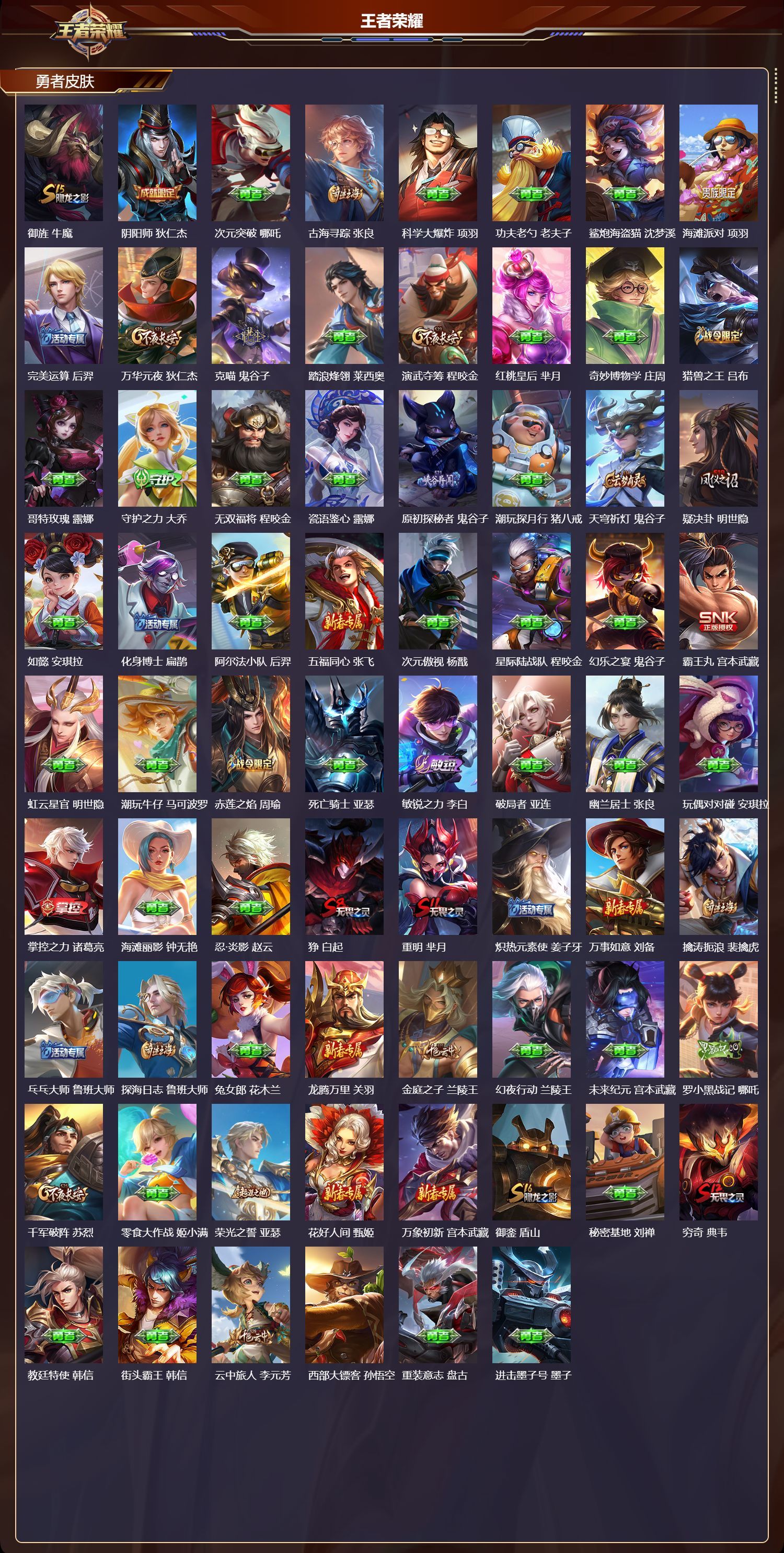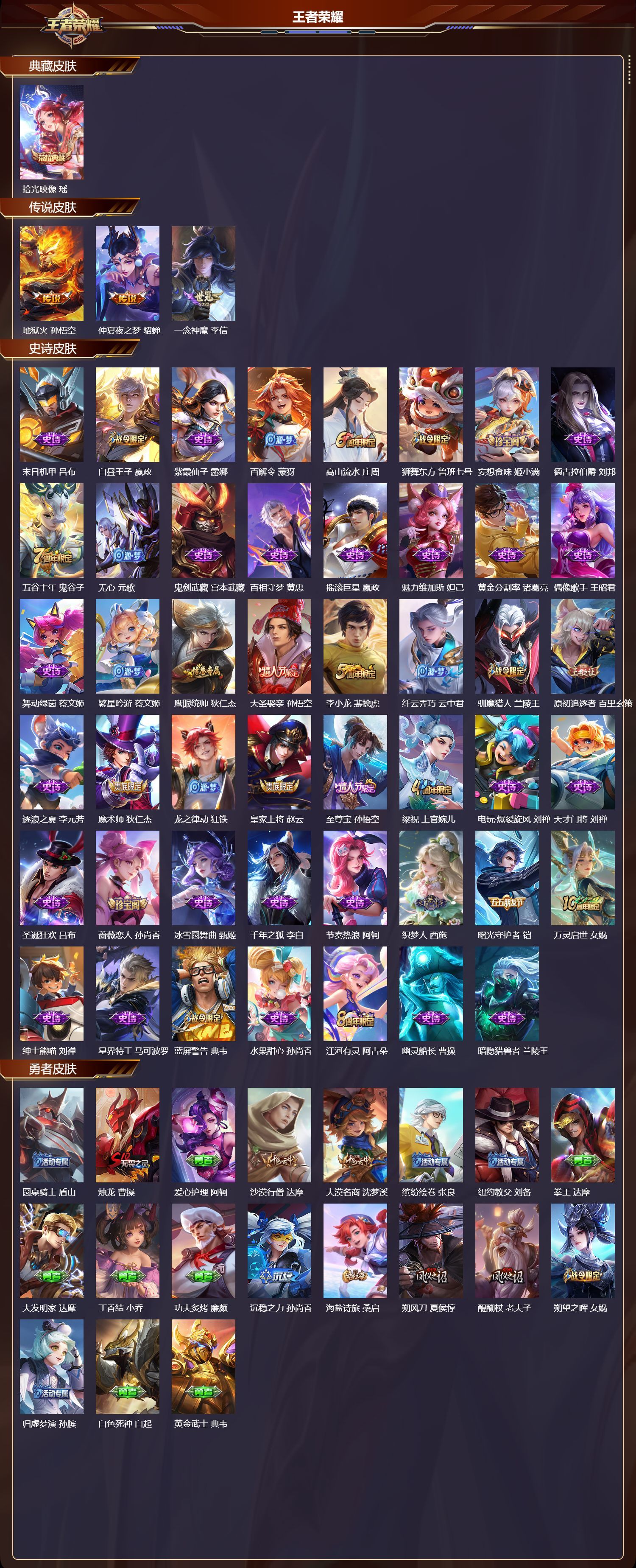 安卓QQ/至尊星耀/216皮肤/128英雄/1典藏/0珍品无双/0无双/0珍品传说/3传说/47史诗