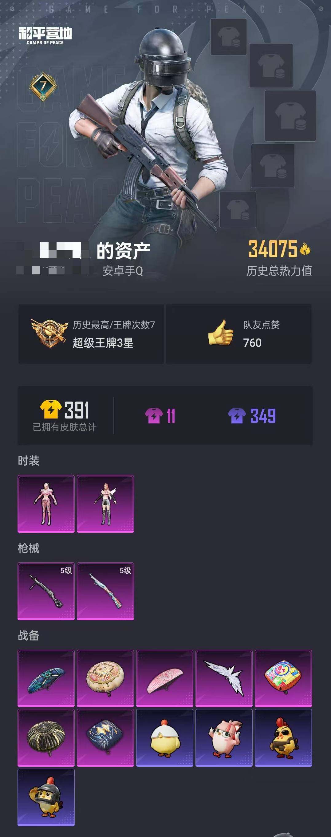 【王者荣耀连体和平精英】实名: 可修改 贵族等级: V5 英雄数: 124 皮