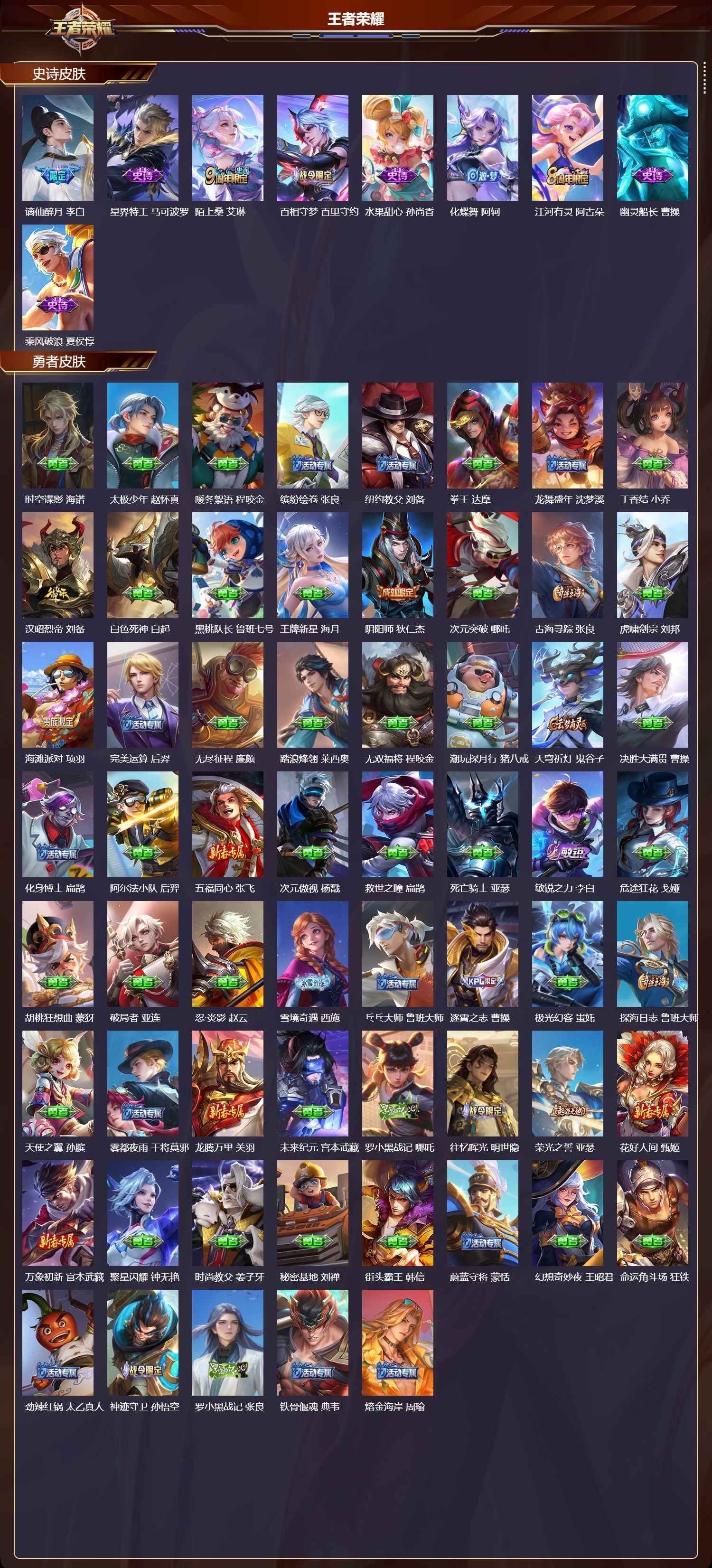 安卓QQ/永恒钻石/194皮肤/128英雄/1典藏/0珍品无双/0无双/3珍品传说/20传说/55史