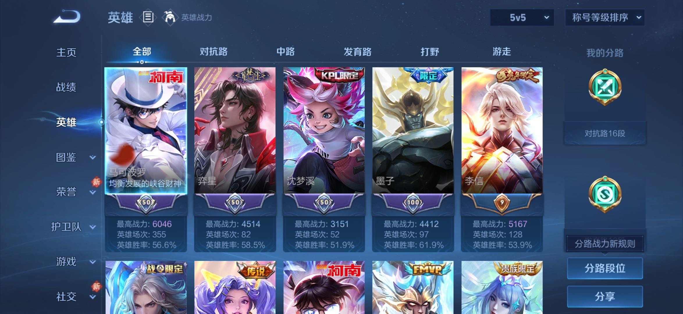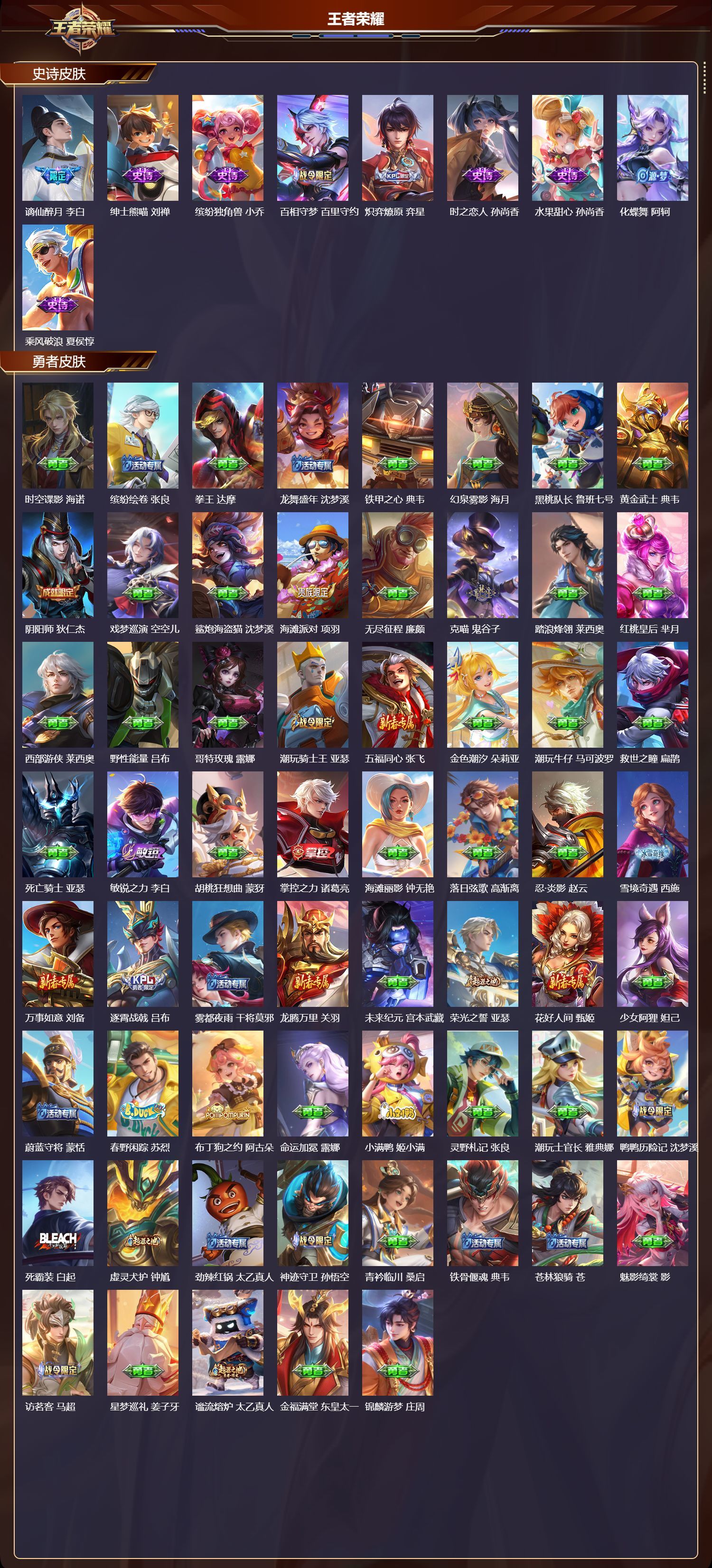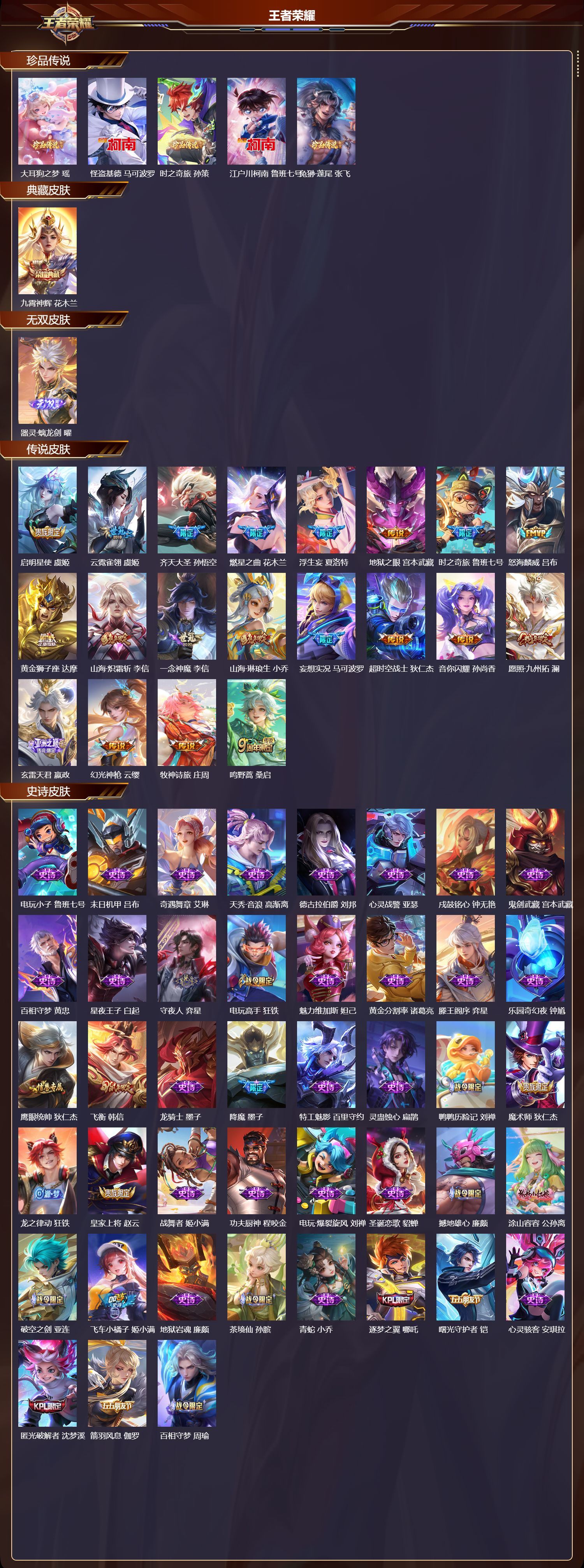 苹果QQ/非凡王者/161皮肤/118英雄/1典藏/0珍品无双/1无双/5珍品传说/20传说/52史