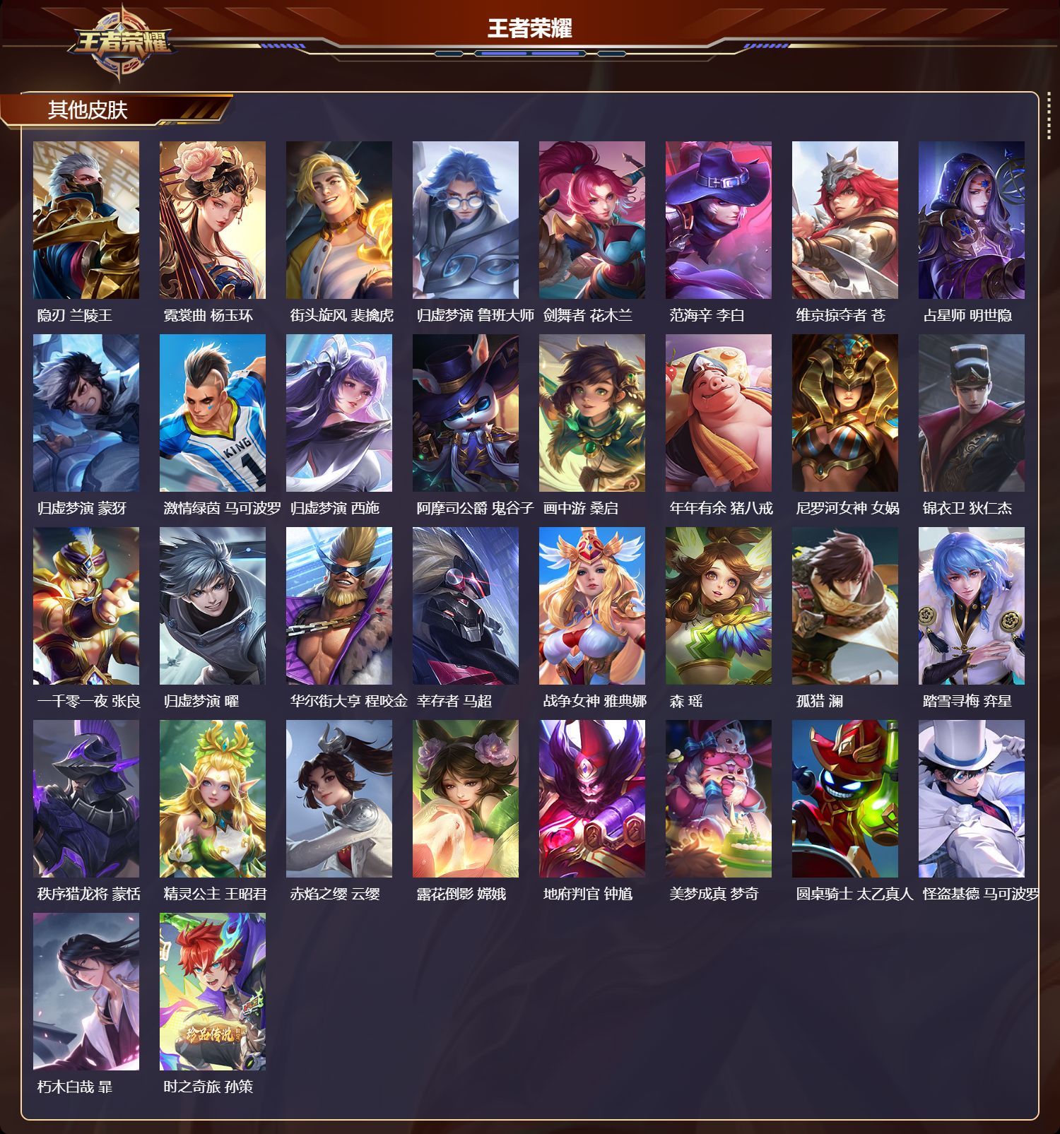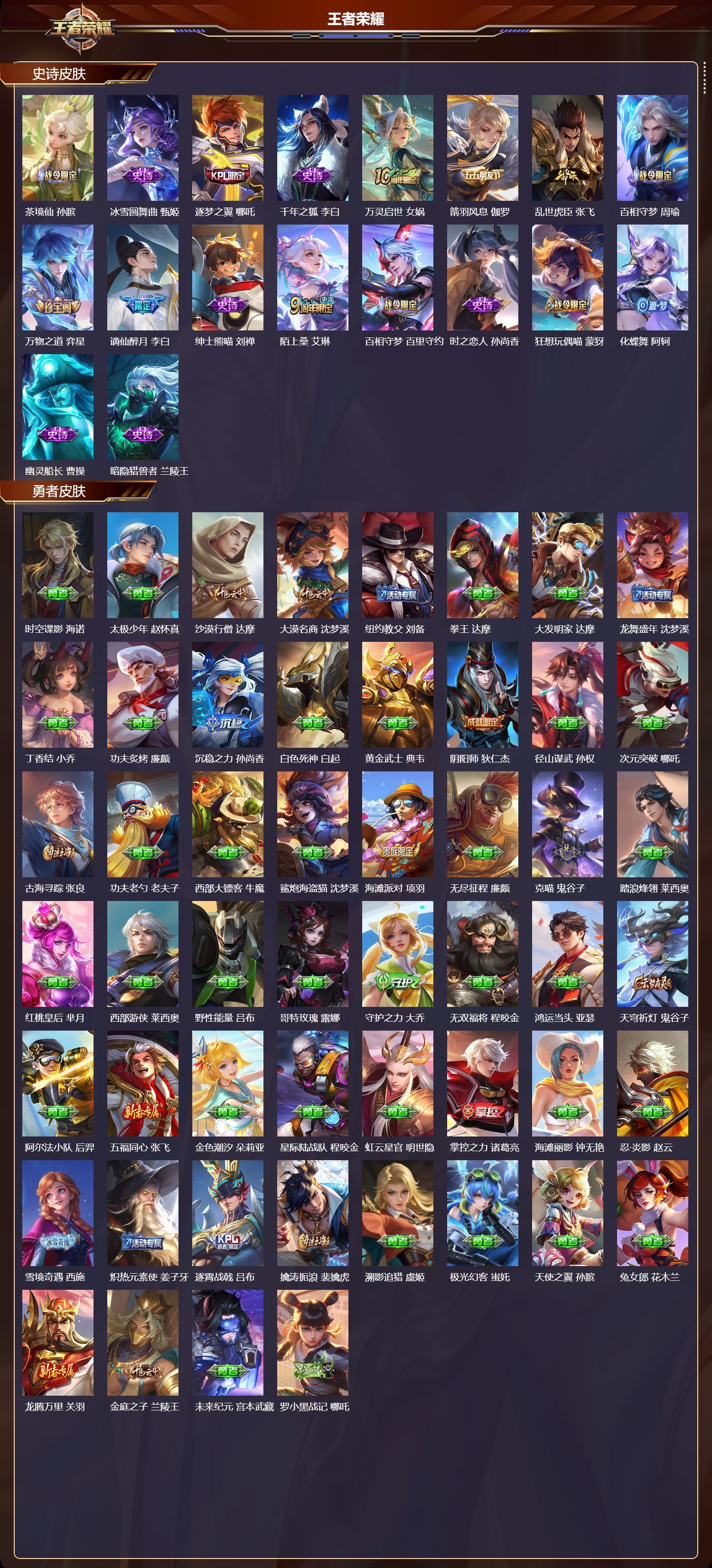 安卓v/最强王者/241皮肤/126英雄/1典藏/0珍品无双/1无双/3珍品传说/16传说/67史