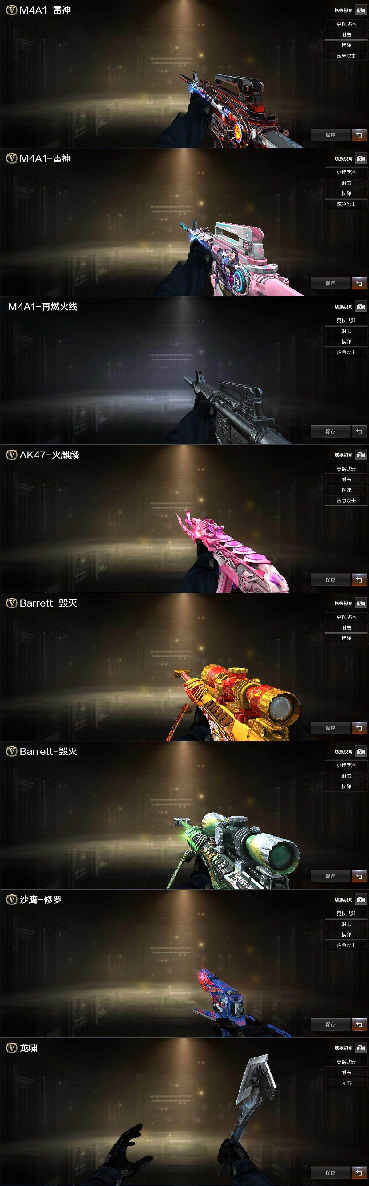 【皮肤】:雷神-暗月,雷神-诺拉 皮肤,M4A1-再燃火线,火麒麟-心动糖果,毁灭-黑大圣皮肤,毁灭-百城浙江 皮肤,修罗-能量核心,轻型军用手斧-再燃火线