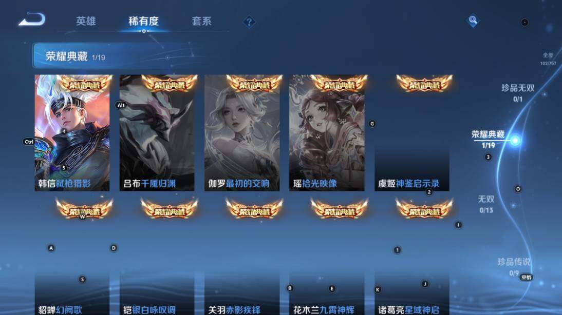 3太阳3月亮3星星,0违规,1星传说,5按键, 安卓Q-V5-101英雄-102皮肤-1典藏皮肤-4传说-30史诗