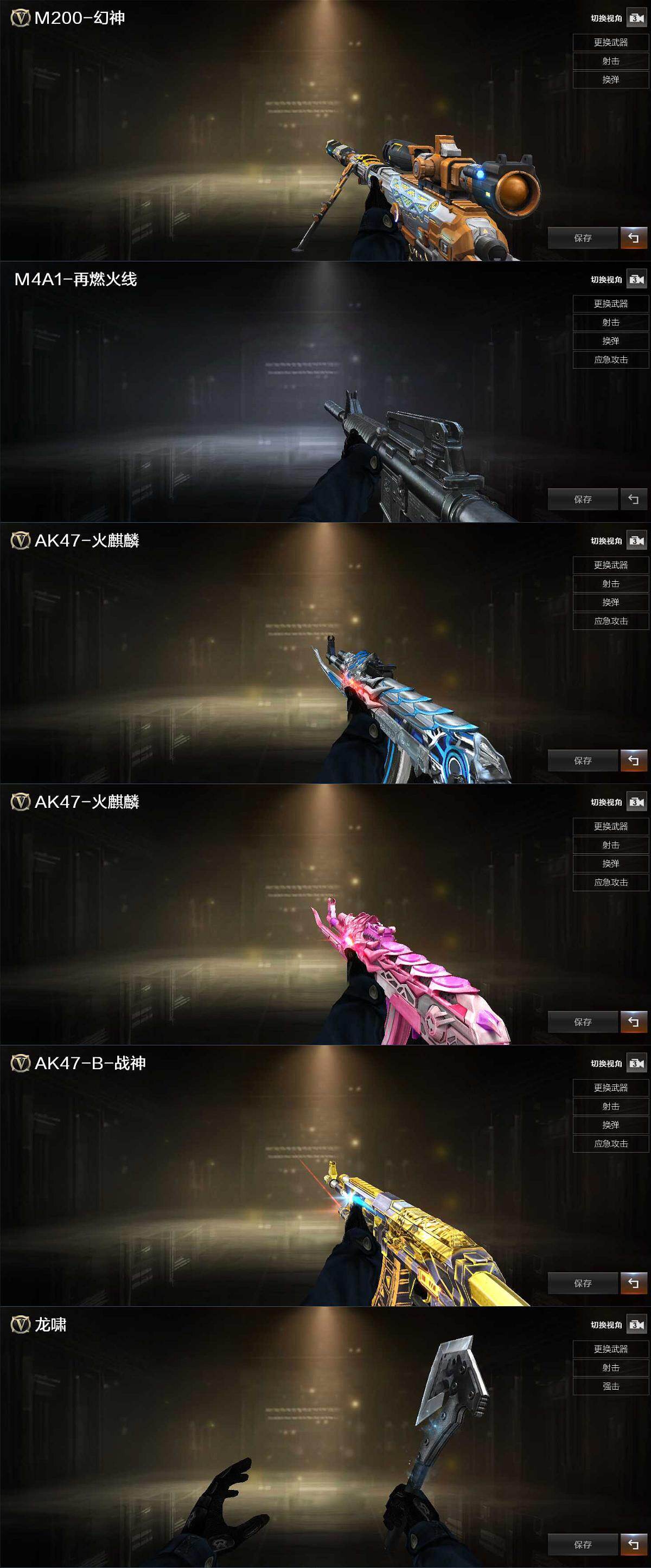 【皮肤】:M200-幻神-黄忠皮肤,幻神-电竞之星 皮肤,金色蔷薇-电竞之星 皮肤,M4A1-再燃火线,火麒麟-雷神,火麒麟-心动糖果,战