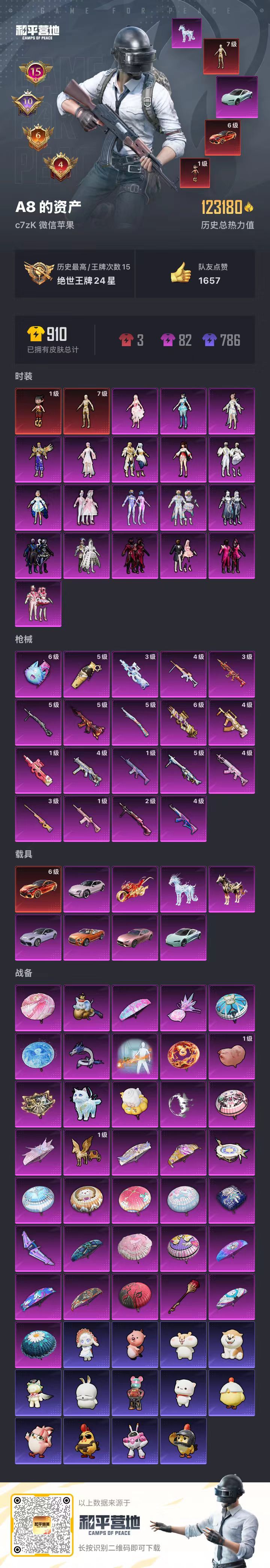 hs57855 苹果v-15王牌印记-2红装-19粉装-19特效枪-9载具-123180热力值-1