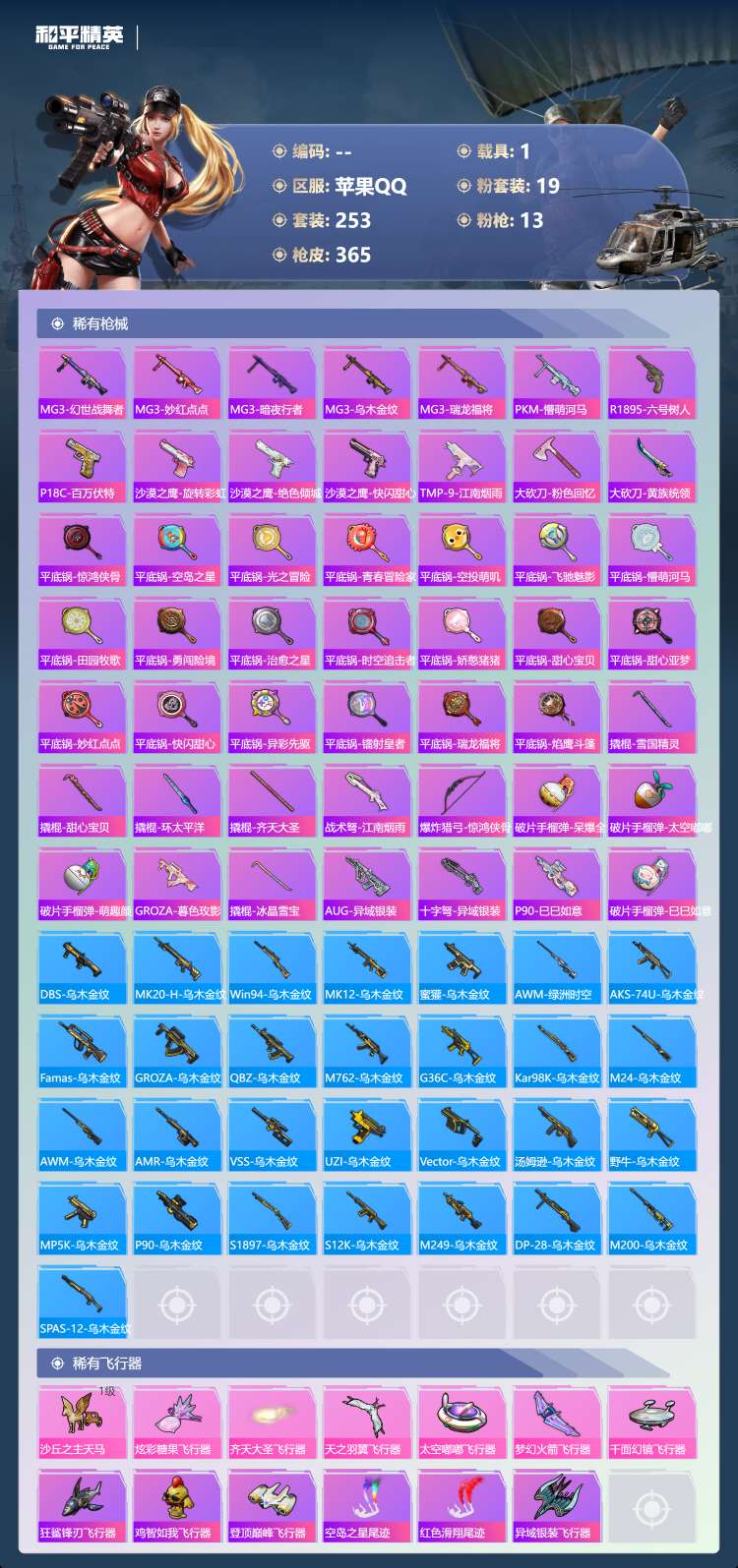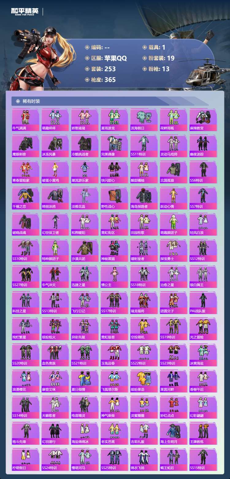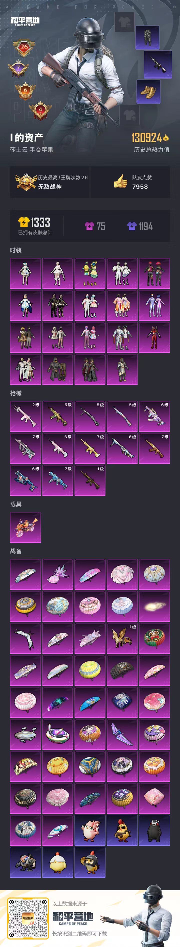 hs57467 苹果手Q-26王牌印记-有战神框-19粉装-13特效枪-1载具-130924热力值-