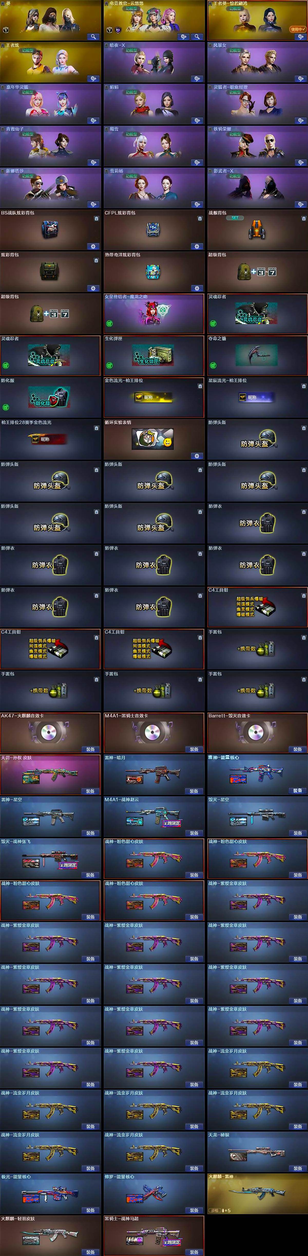 【热门武器】:QBZ03-金色蔷薇,HK417-朱雀,M200-竞技荣光,死亡之眼*2,荣耀世冠-柯尔特,C.A.T,M4A1-黑骑士,汤姆逊-烈龙*2,加特林-炼狱*2,裁决-雪莉杨,USP-雷暴,沙鹰-修罗*2,荣耀世冠-龙啸
