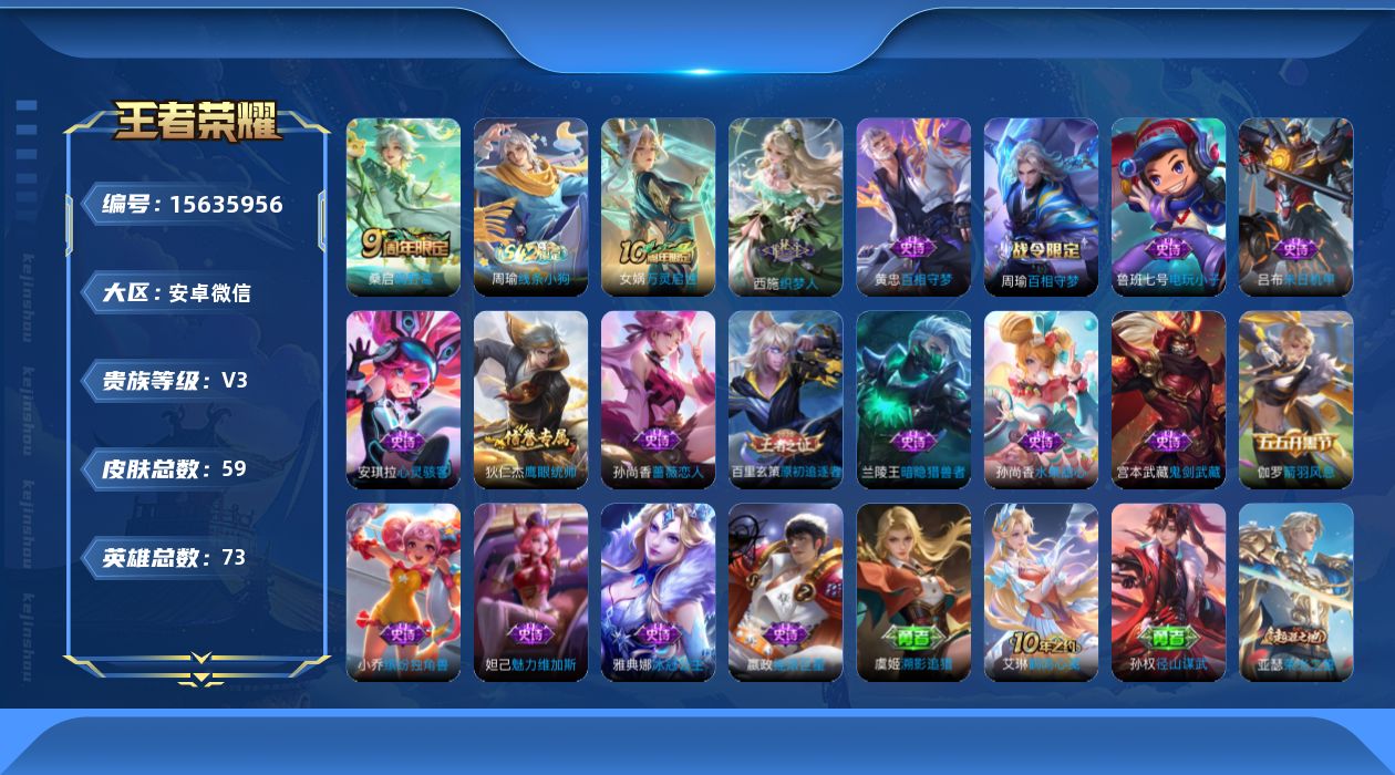 [15635956]V3 2传说 73英雄 59皮肤 可修改实名