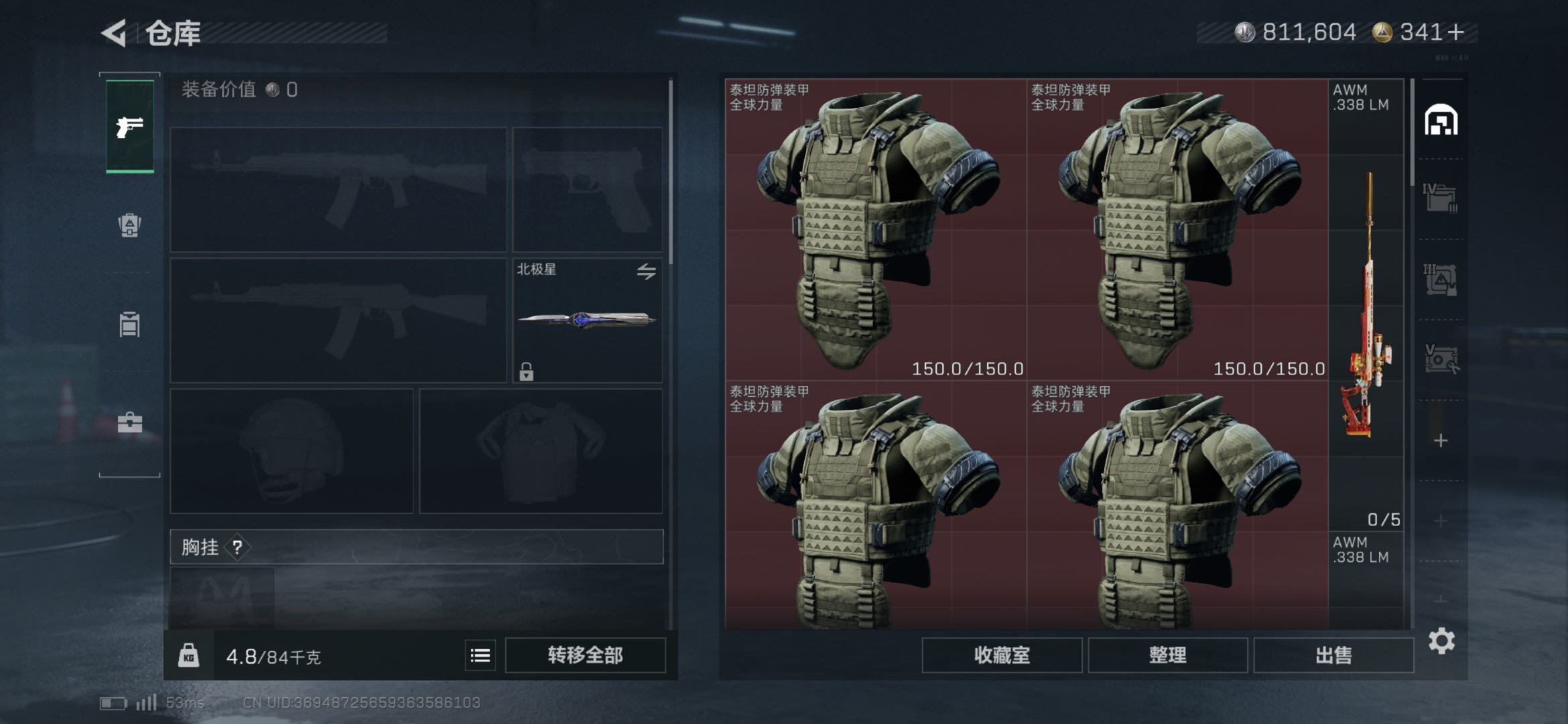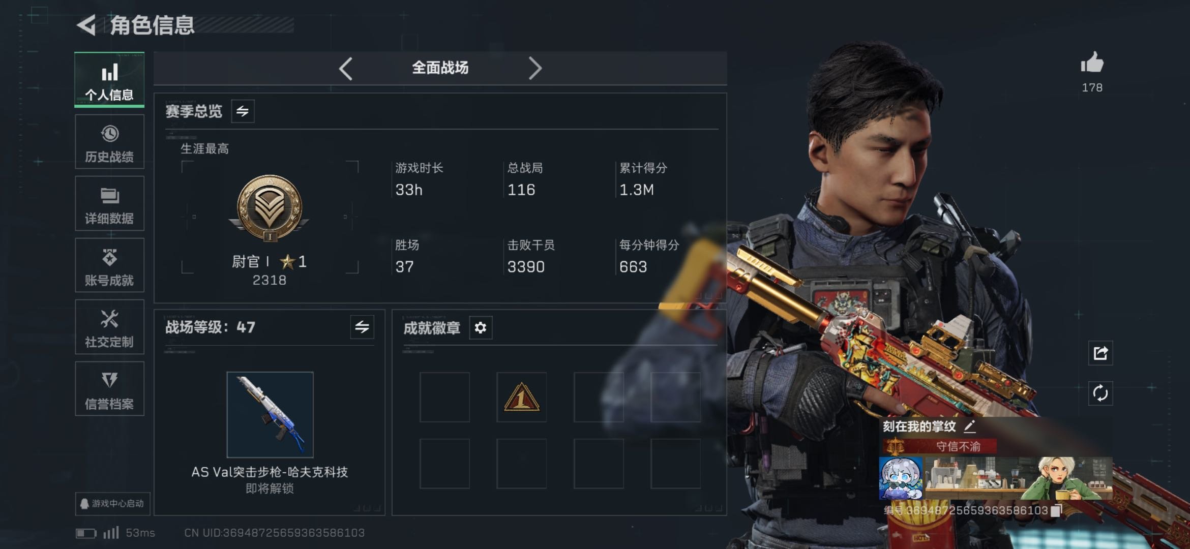 总资产125.86M,哈夫币 811.6K,战场等级:47 上等兵,行动等级:60 黄金,角色皮肤4