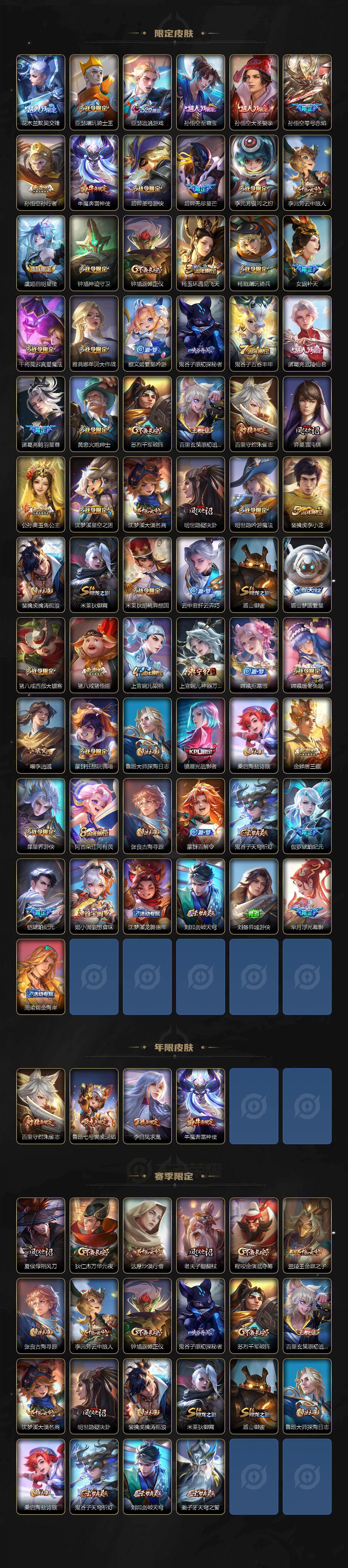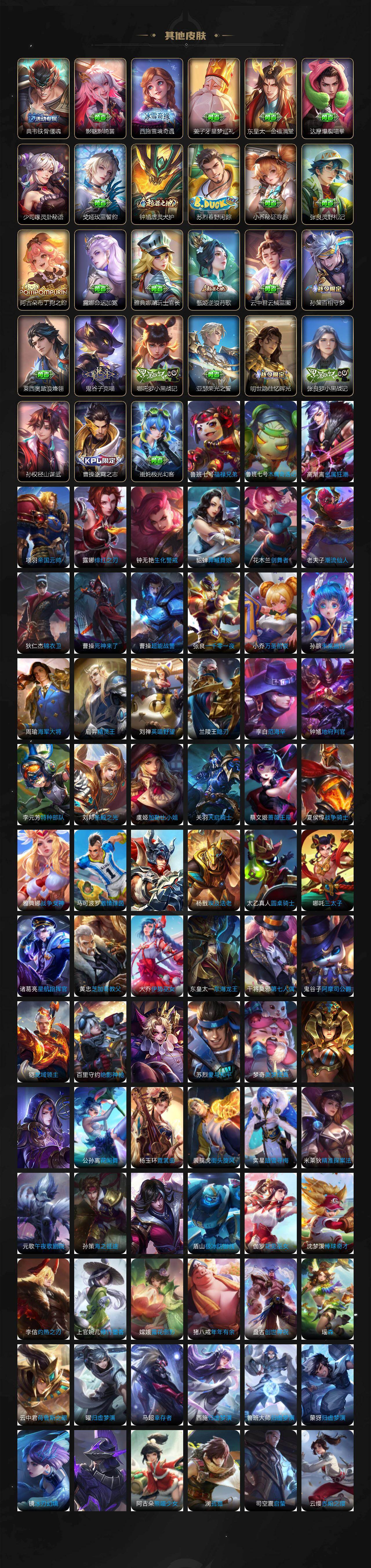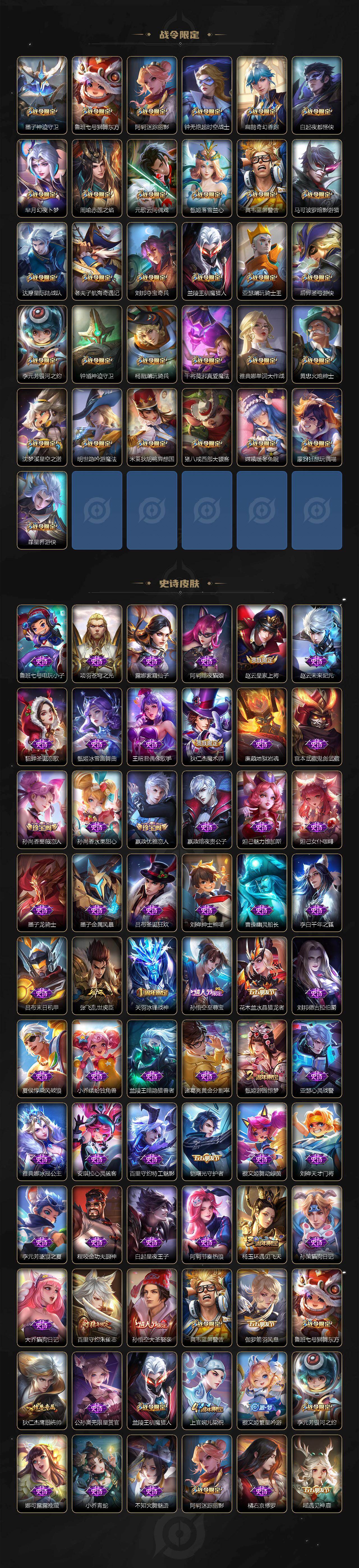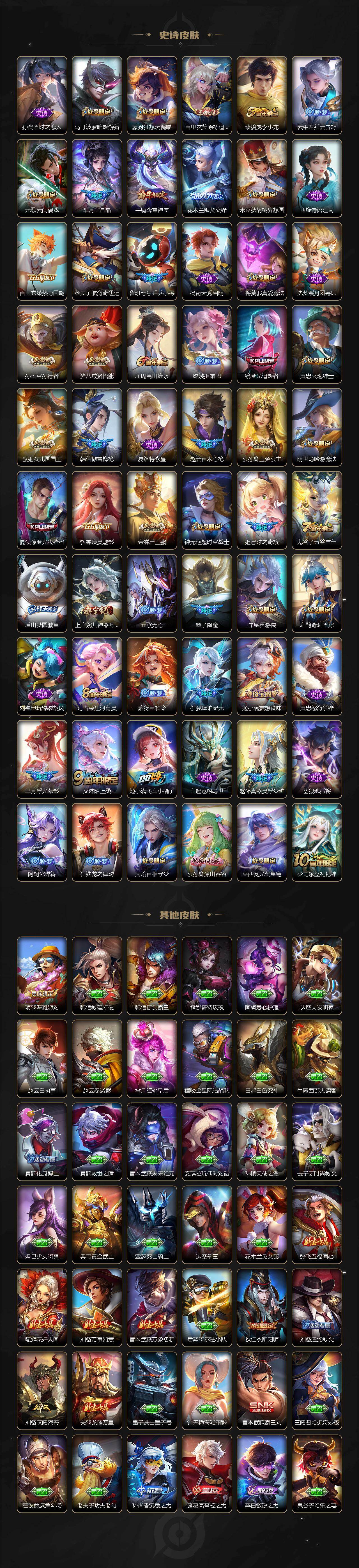 【英雄全皮】:墨子全皮,元歌全皮,达摩全皮,刘邦全皮,孙权全皮,苍全皮,盾山全皮,猪八戒全皮,金蝉全皮,影全皮