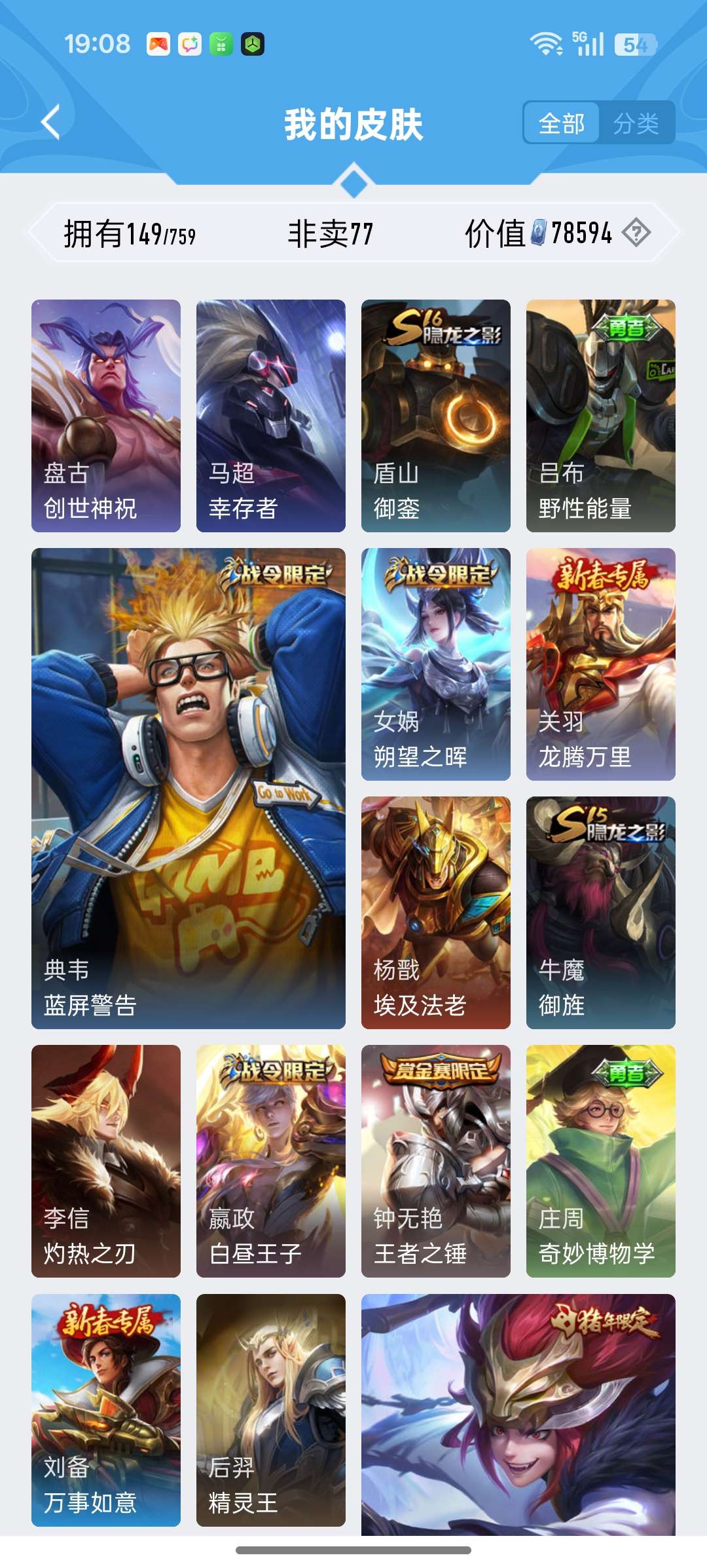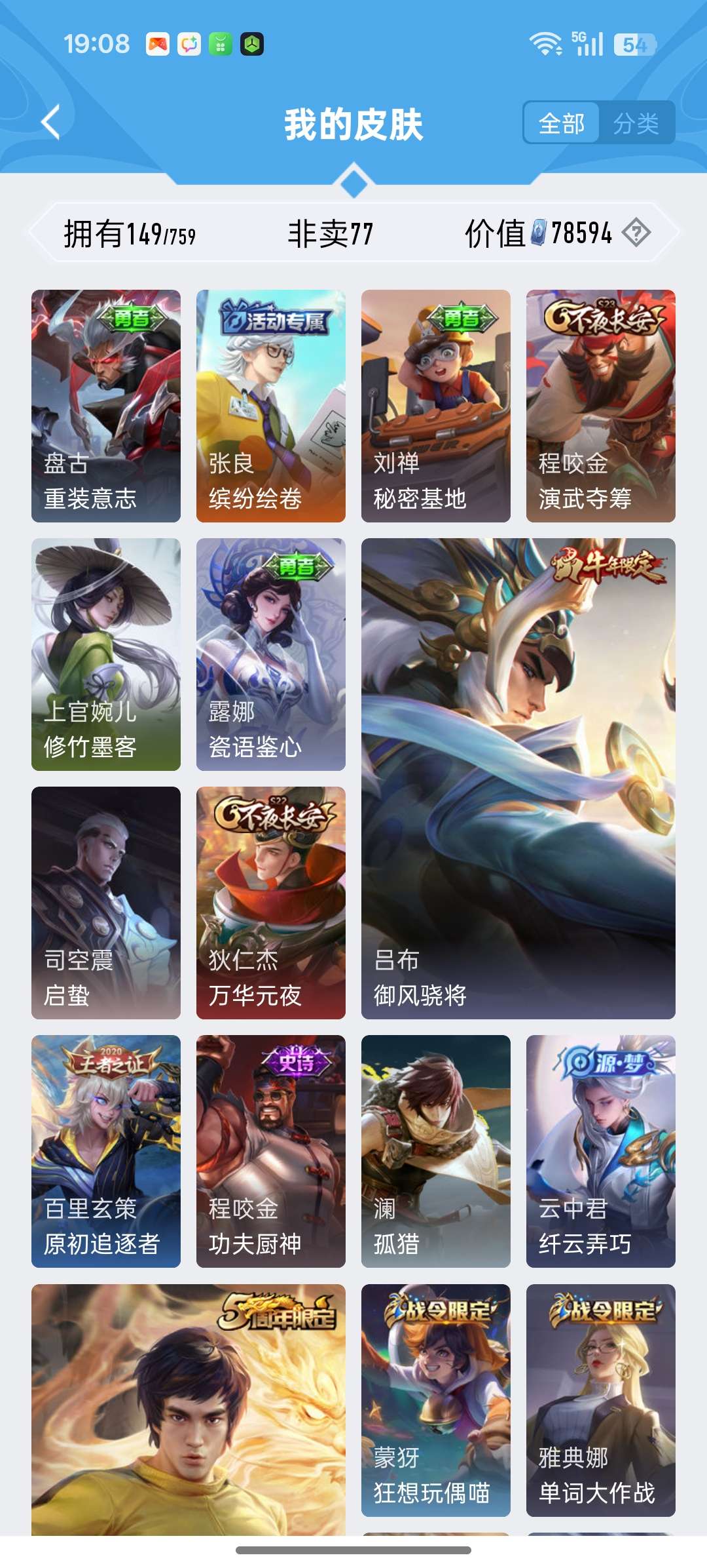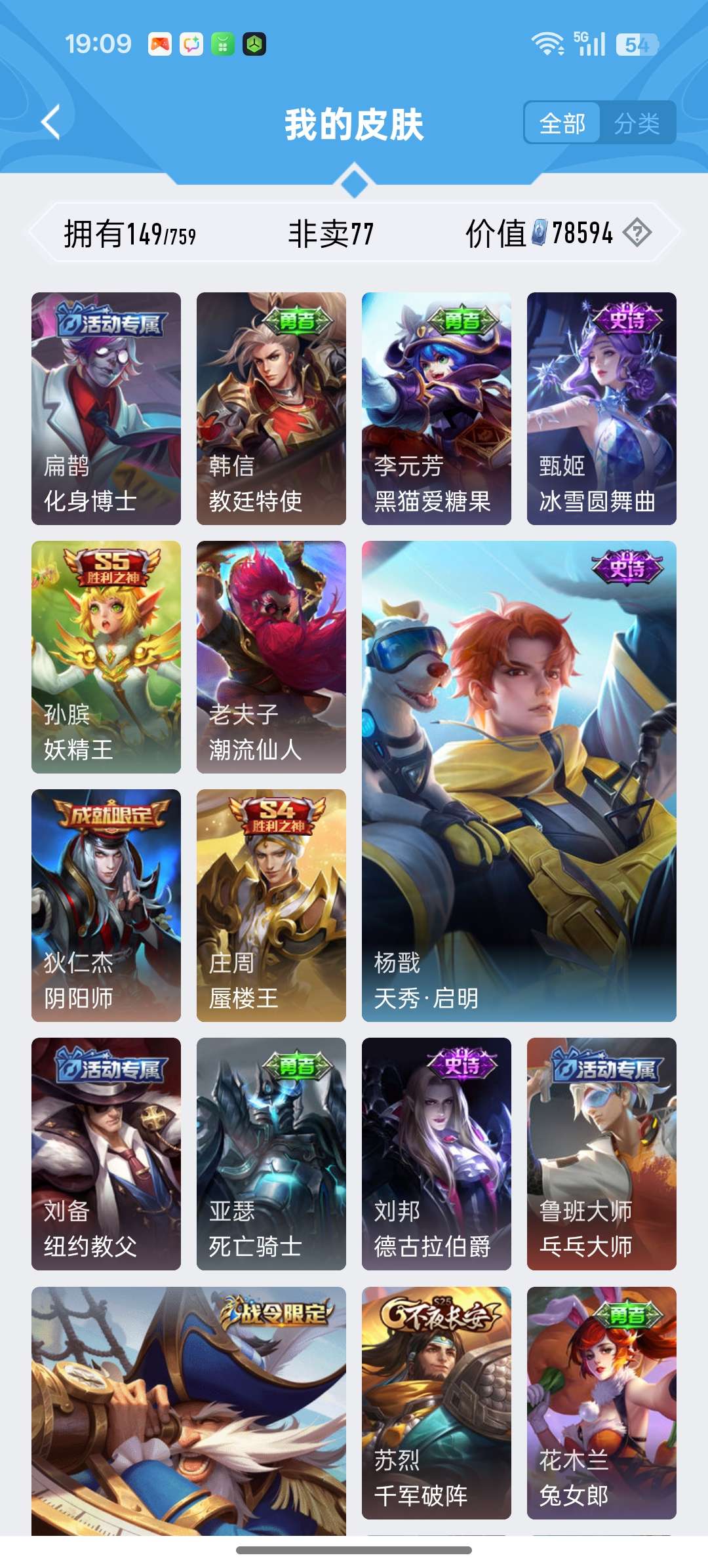 V6 皮肤149 英雄129 荣耀黄金 星传说1 其他皮肤自己看