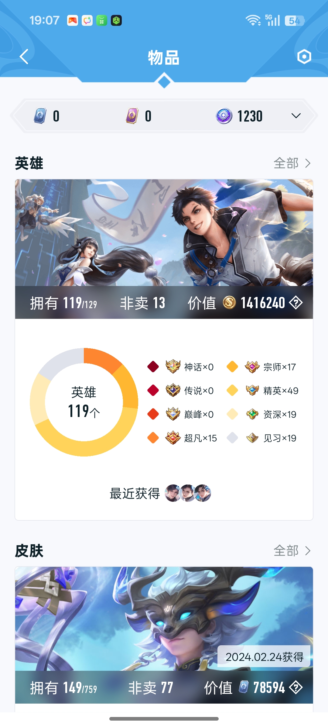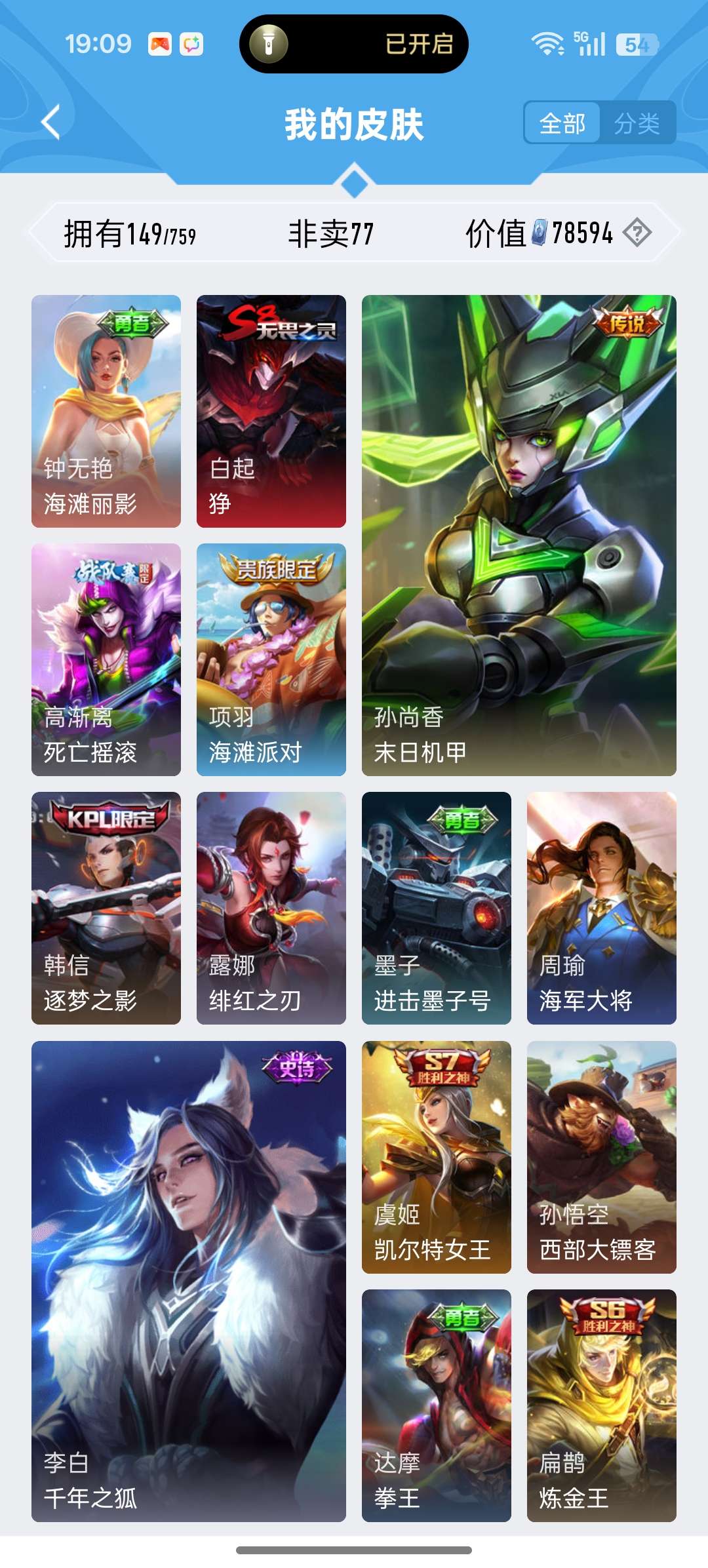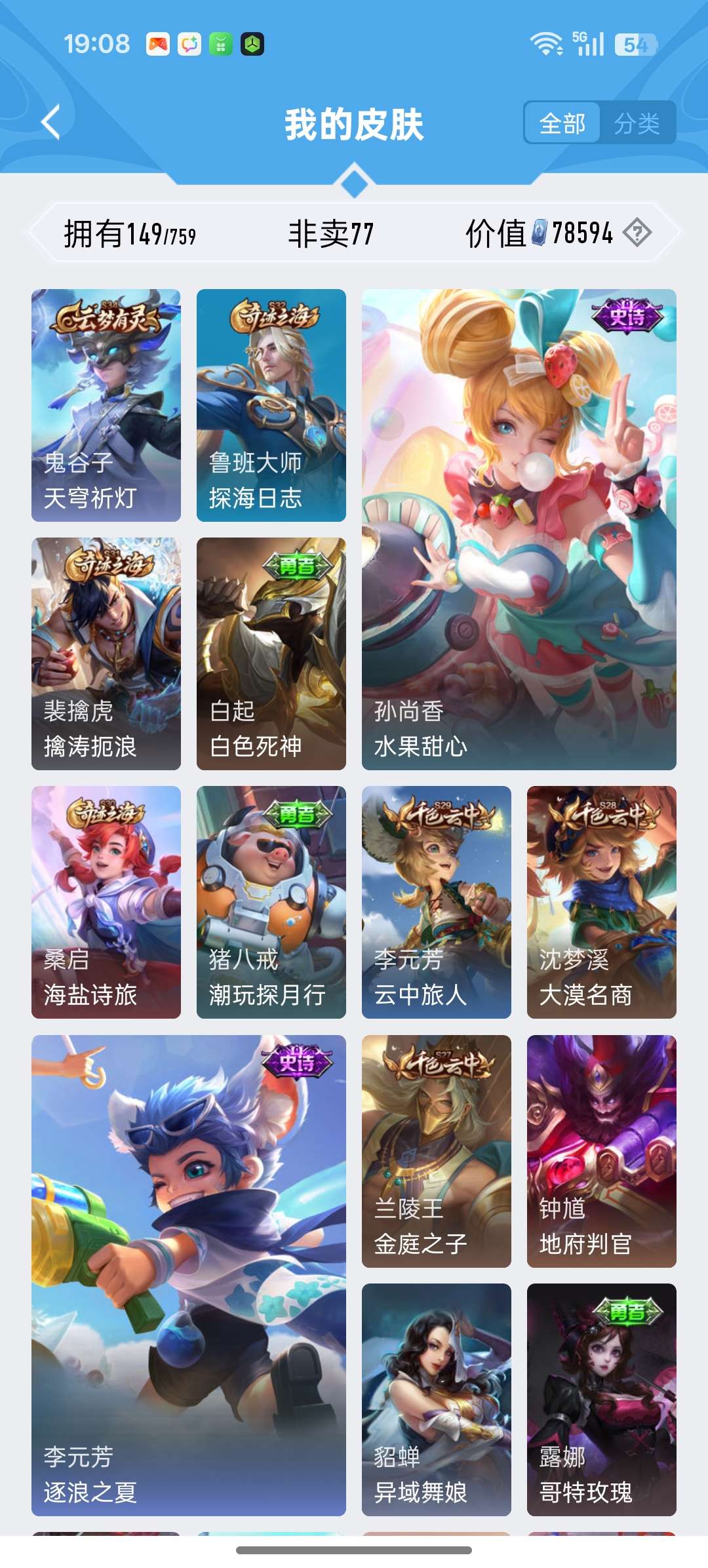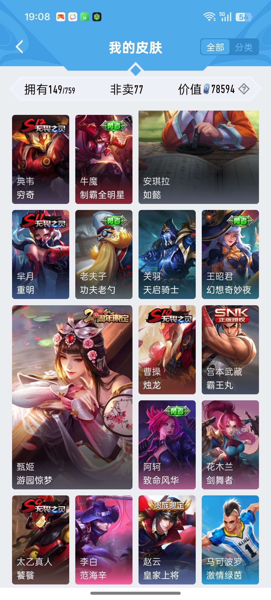 V6 皮肤149 英雄129 荣耀黄金 星传说1 其他皮肤自己看