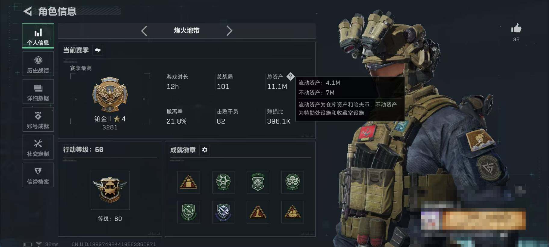 总资产(M):11M/哈夫币(K):1122K/哈夫币(K):1122K/传说枪皮数:18/全面战场