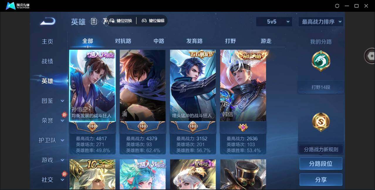 2010527 王者荣耀账号 安卓Q-V7-尊贵铂金II段位-125英雄-14