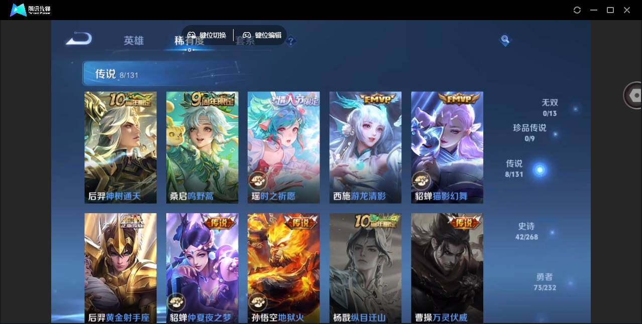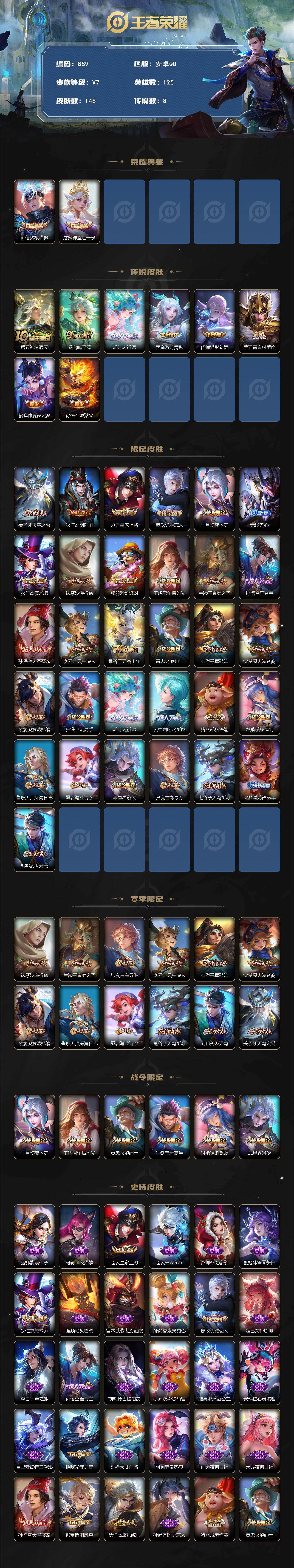 2010527 王者荣耀账号 安卓Q-V7-尊贵铂金II段位-125英雄-148皮肤-2典藏皮肤-8传说-42史诗