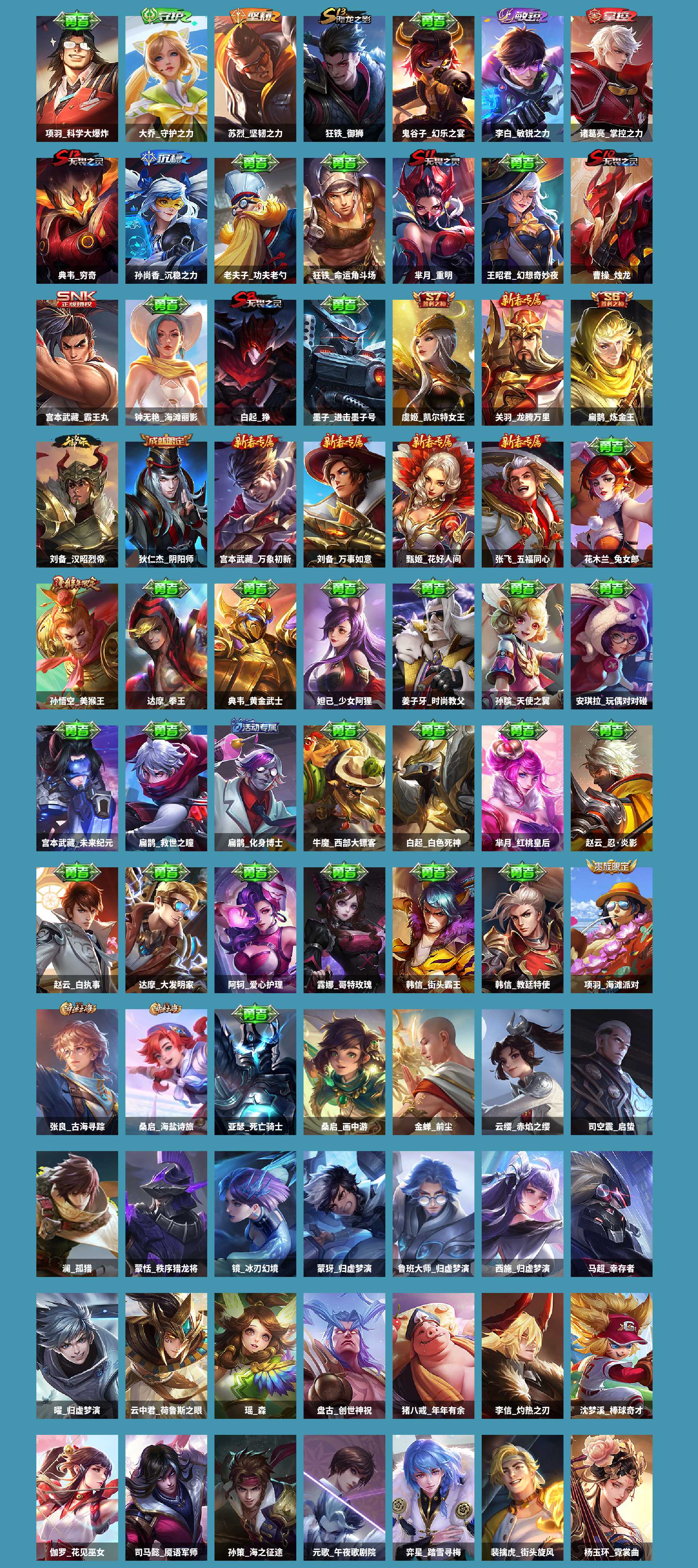 诸葛+猴子典藏/山海小乔/曦玄貂蝉/诗剑行皮肤数量302印记
