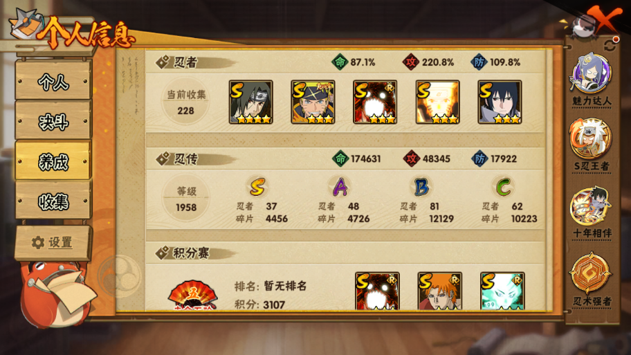 1212w战力白破超37S+328忍战凯+298咒印佐助+5个198直购A/48A+国宝+万蛇