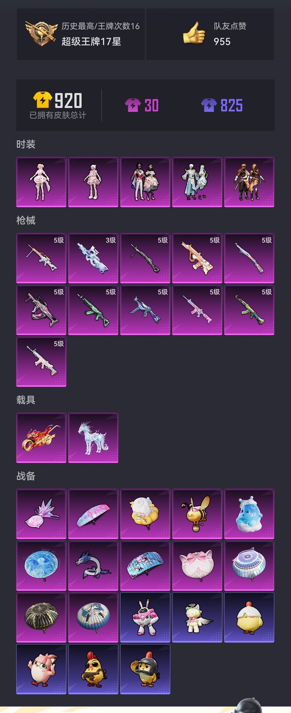 577-【11特效枪5粉装3载具】、安卓Q区-83638热力值-16印记-164套装-265枪皮、【3载具】、冰绡玉鳞、踏焰逐风摩托车、僚机-冰龙团团【5粉装】、烈焰拳霸、星穹咏叹调、角色-奇迹舞步、美雪、角色-羊梦糖心、金丰海韵【11特效枪】、SCAR-L-锦绣绵绵(5级)、AKM-绿萝繁花(5级)、M762-青锋波束(5级)、Kar98K-巳巳如意(5级)、AUG-暖羊咩咩(5级)、M416-电玩时刻(5级)、GROZA-镜光银凌(5级)、DP-28-豹影疾电(5级)、P90-魔童闹海、敖丙