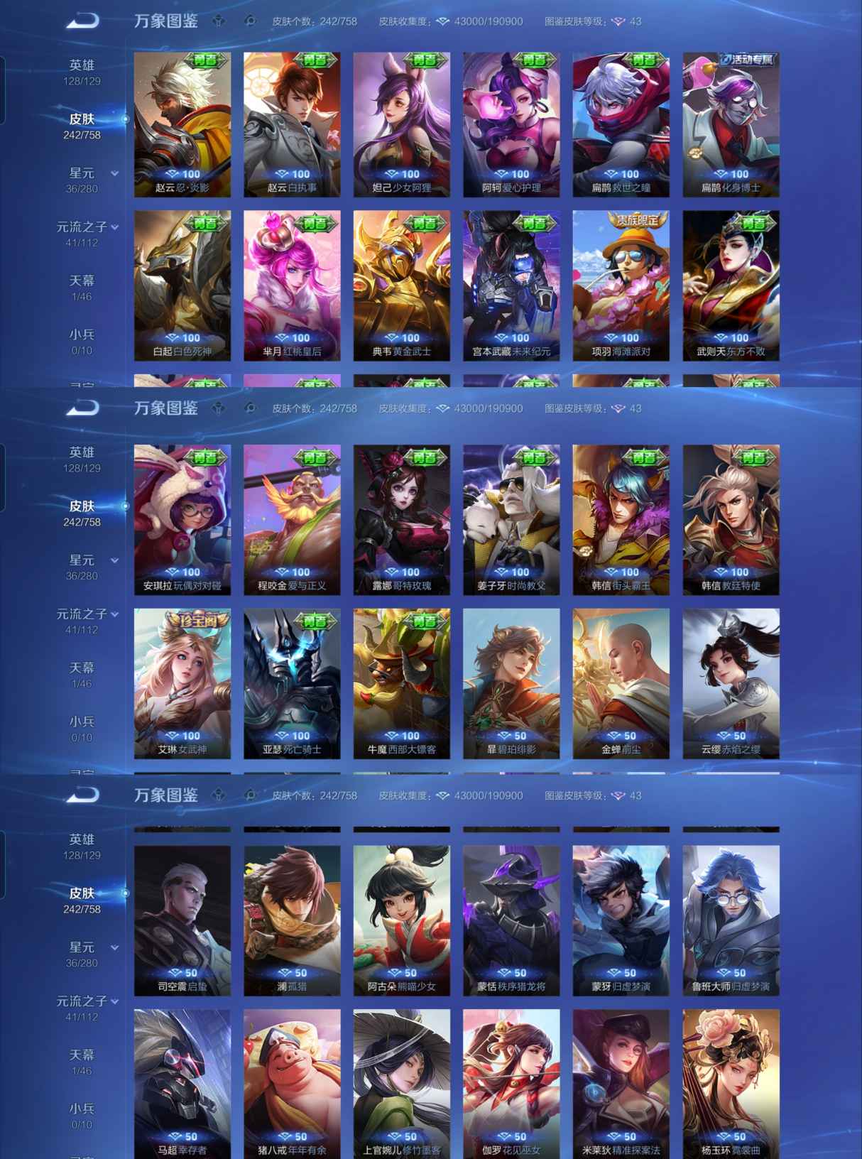 【传说皮肤】 玄雷天君 金乌负日 黄金天蝎座 鸣野蒿 霜北刀 启示之音 碎云 仲夏夜之梦 太华 地狱之眼 绛天战甲 末日机甲 异界灵契 海洋之心 启明星使 淬星耀世