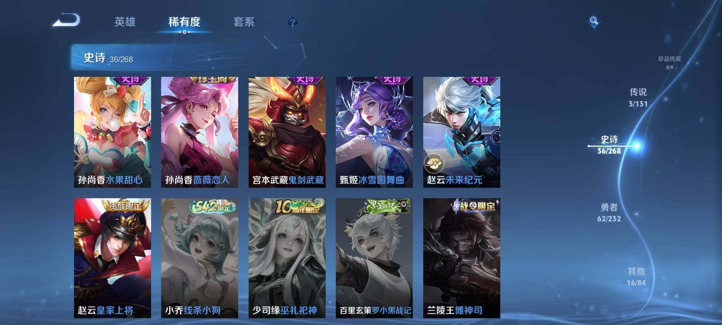 安卓Q-V5-至尊星耀V段位-126英雄-117皮肤-3传说-35史诗
