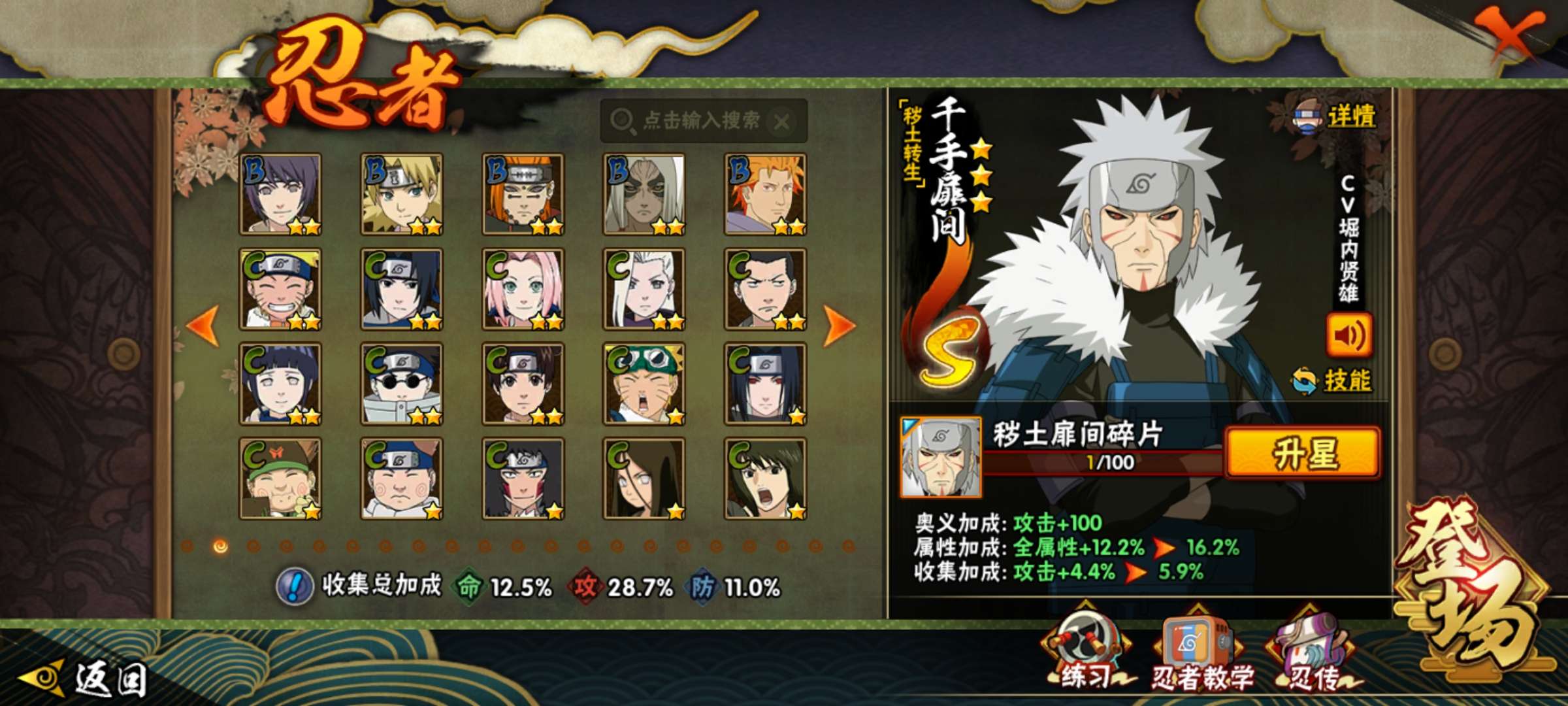 4S陆地战神秽土扉间,十尾带土46片,11蓝卷,限时点卷3000。