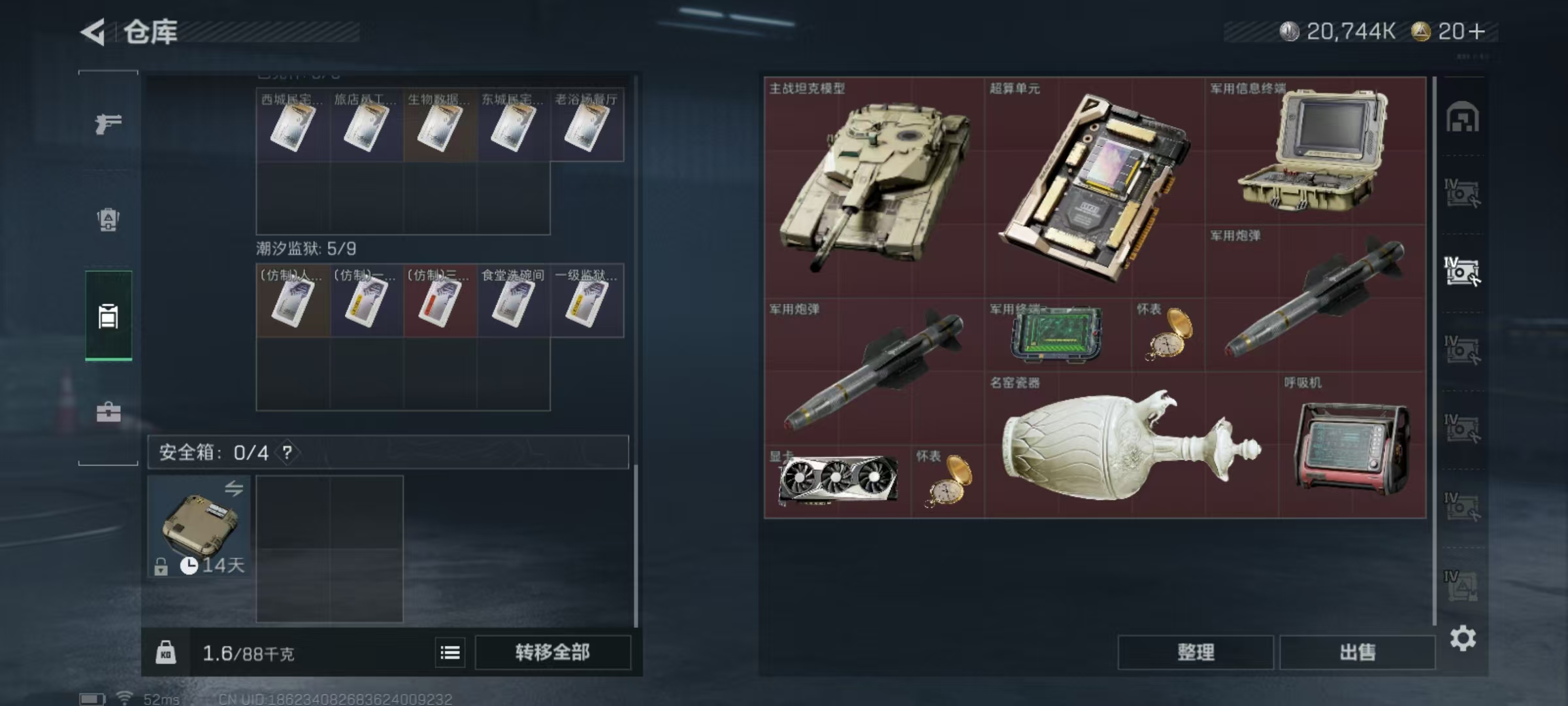 三端互通-总价值144.2M-哈夫币20744k-烽火地带等级60