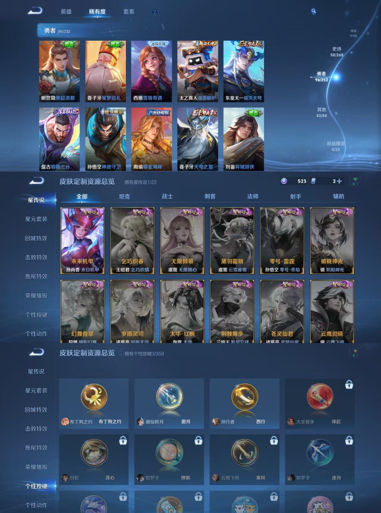 191皮肤V6 3传说 1星元 未来机甲 3按键皮肤 孙行者 大圣娶亲打野13段
