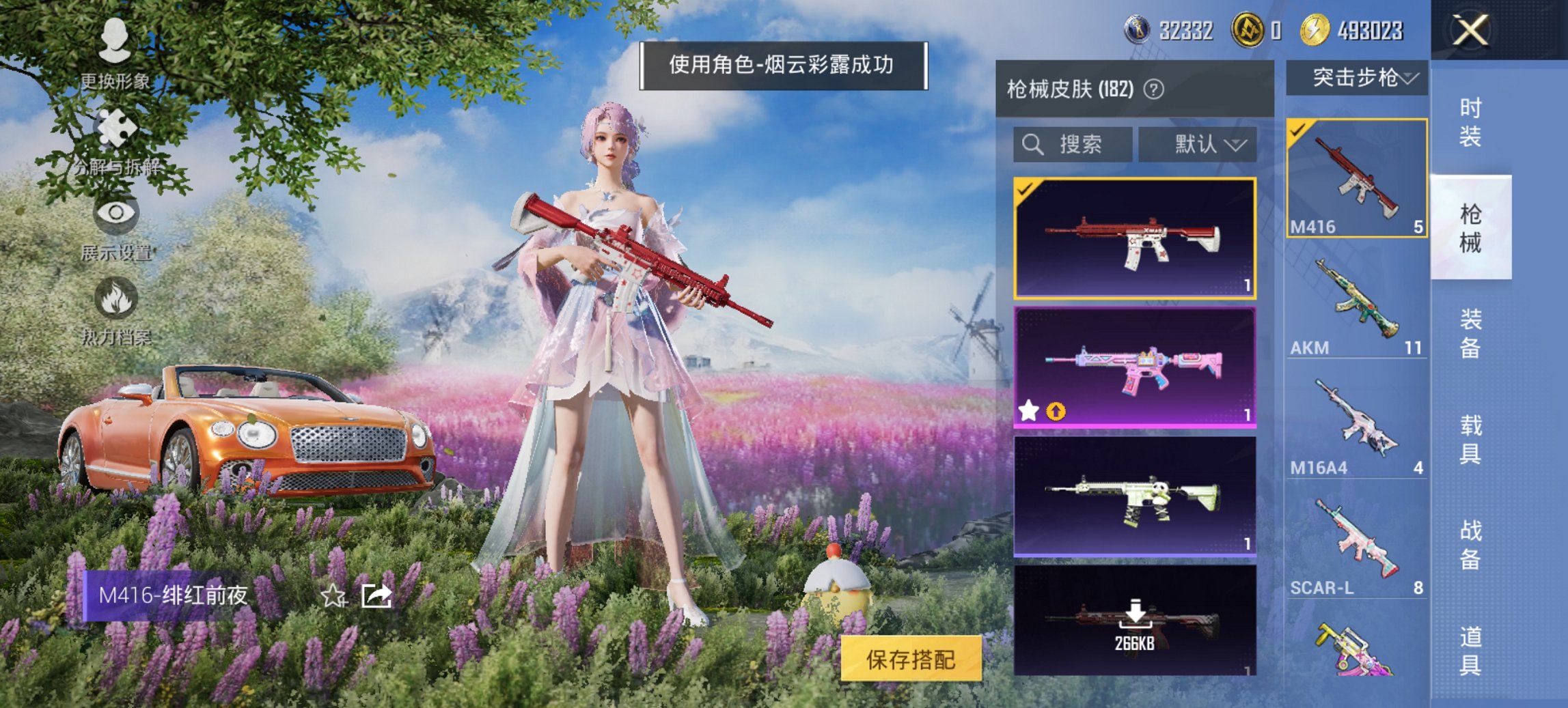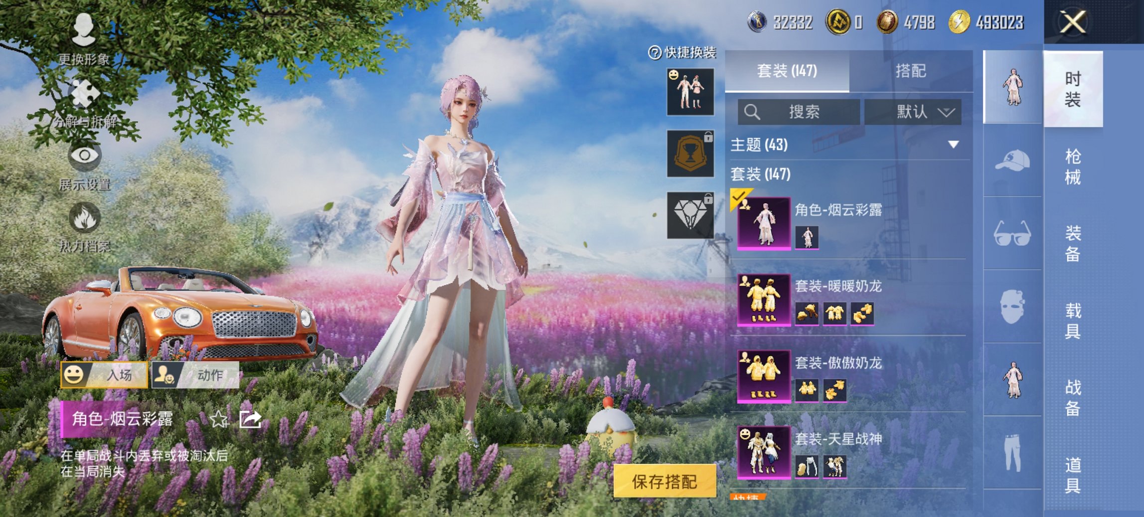 271-【3载具8粉装6特效枪、秒换绑不用等】、安卓Q区-60707热力值-8印记-147套装-180枪皮、【3载具】、宾利飞驰(布罗德盖棕双色)、宾利欧陆GT敞篷(火焰橘)、越野奶龙龙【8粉装】、新星烈龙(小白龙)、暖暖奶龙、傲傲奶龙、炙焰红王、第五大道、天星战神、天禅智恒、角色-烟云彩露【6特效枪】、SCAR-L-锦绣绵绵(5级)、AKM-绿萝繁花(5级)、M16A4-晶梦幻蝶(5级)、Kar98K-巳巳如意(5级)、M416-电玩时刻(5级)、DP-28-豹影疾电(5级)【52热门】、梦魇