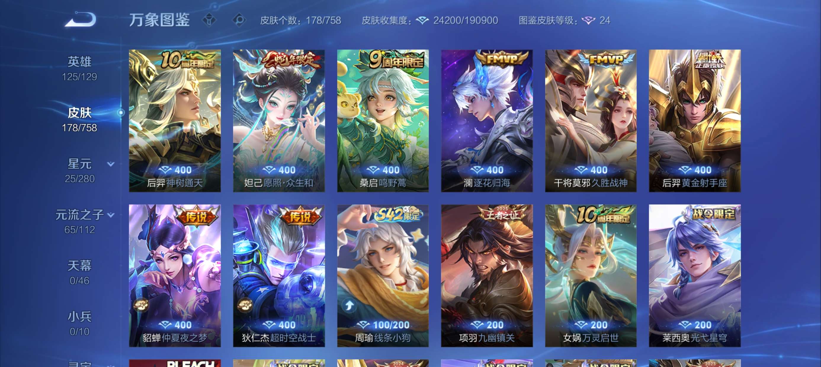 300抽荣耀水晶,8传说,180个皮肤左右,不讲价直接拿