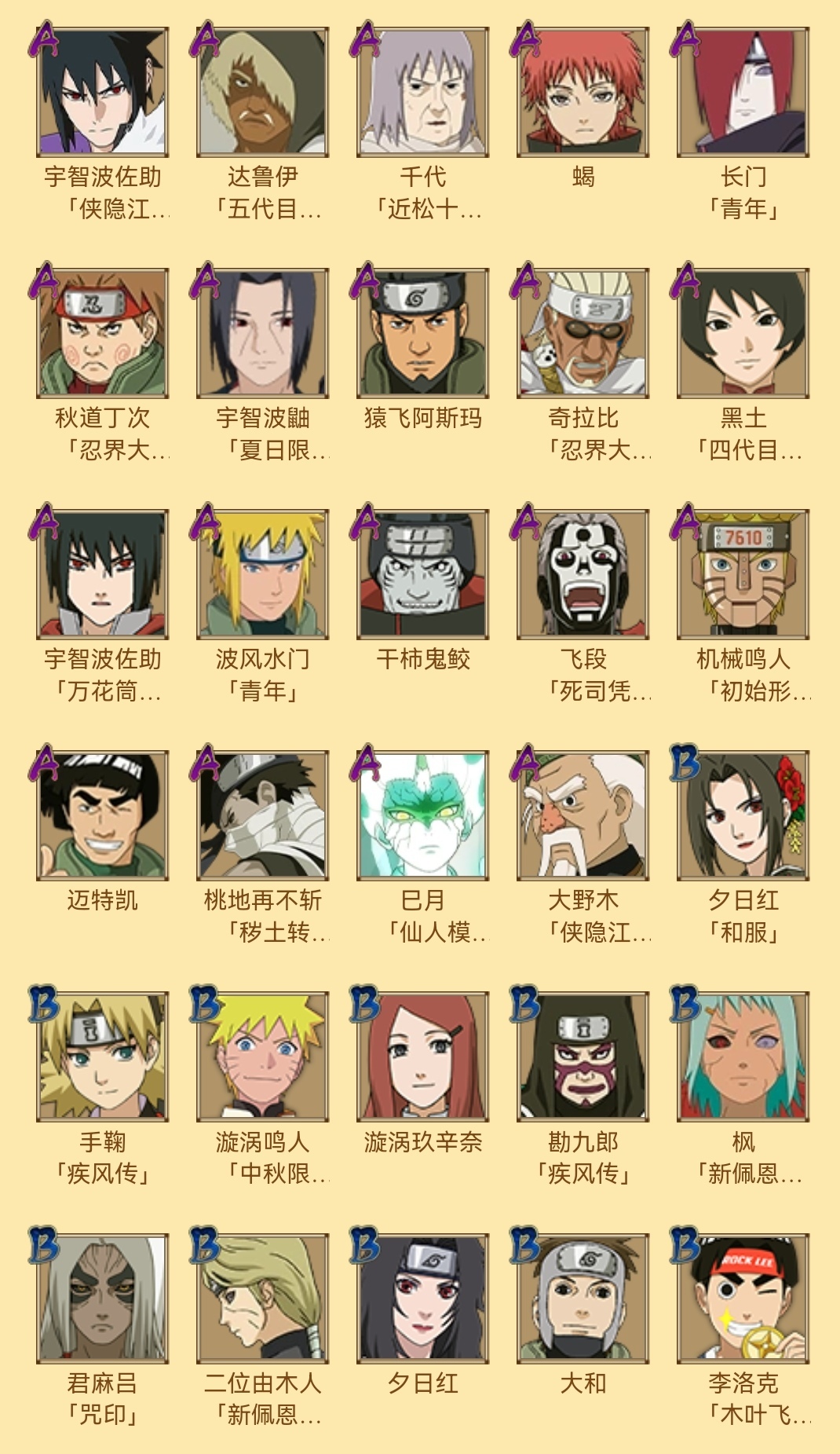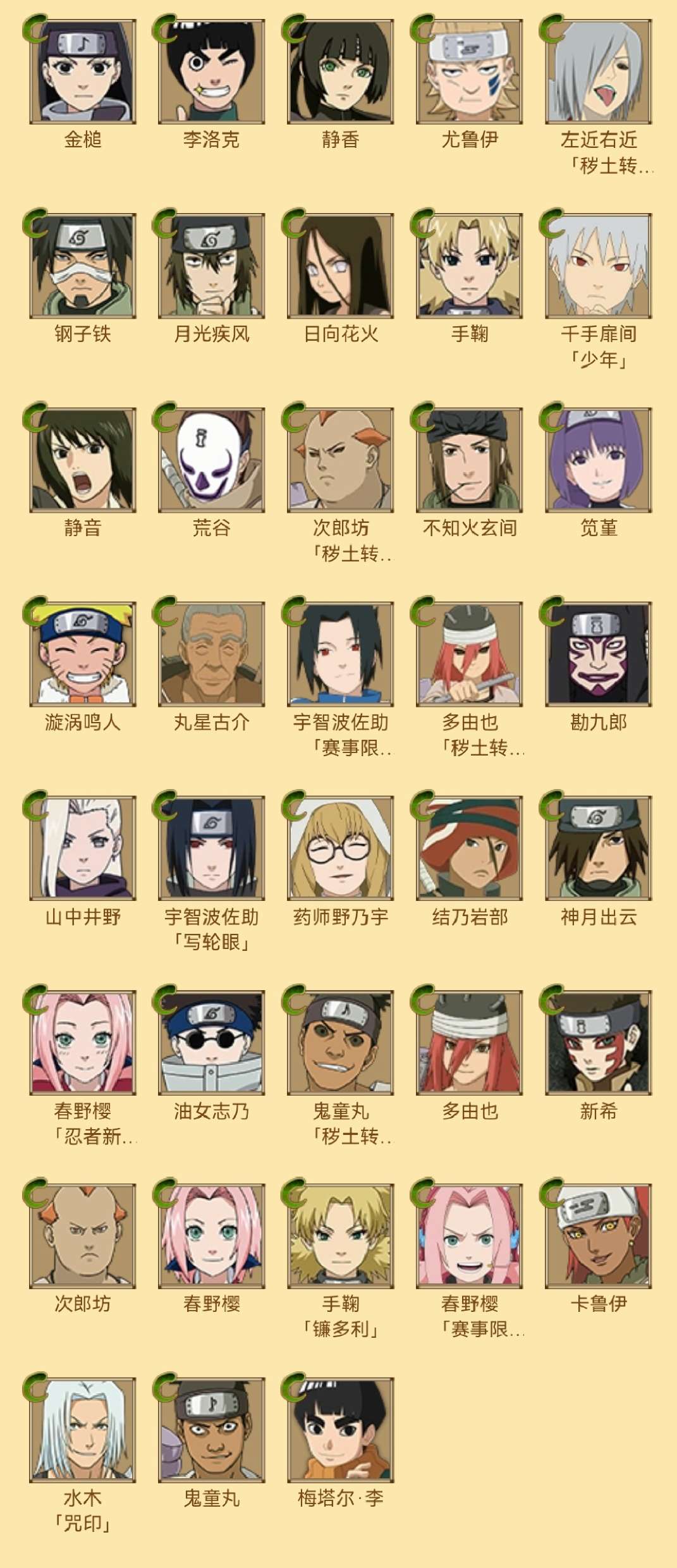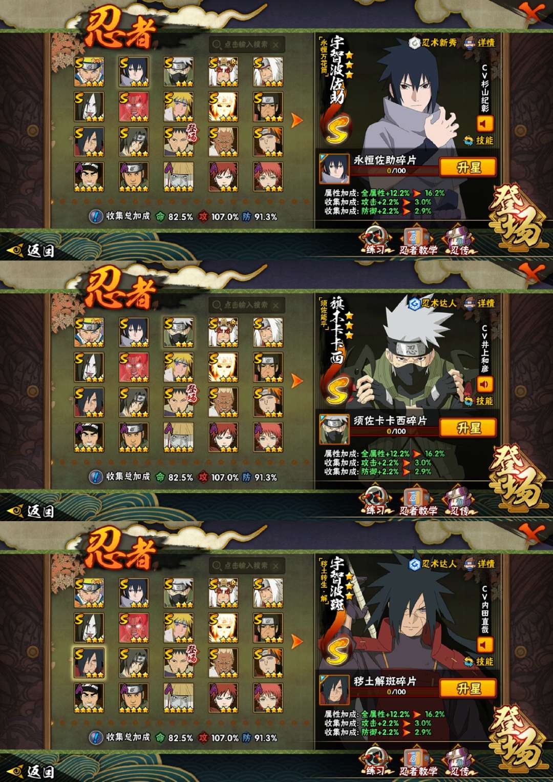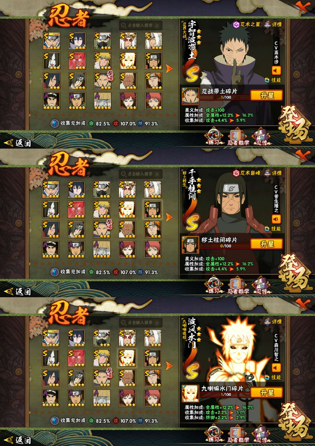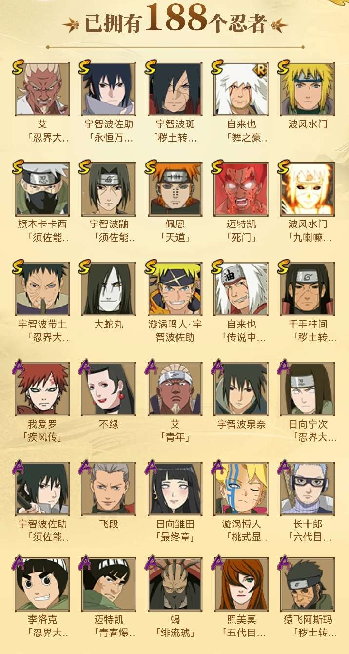 号里都是火影热门强势忍者,有忍战带土秽土柱间九喇嘛水门永恒佐助须佐卡卡西秽土解斑忍战雷影死门凯等