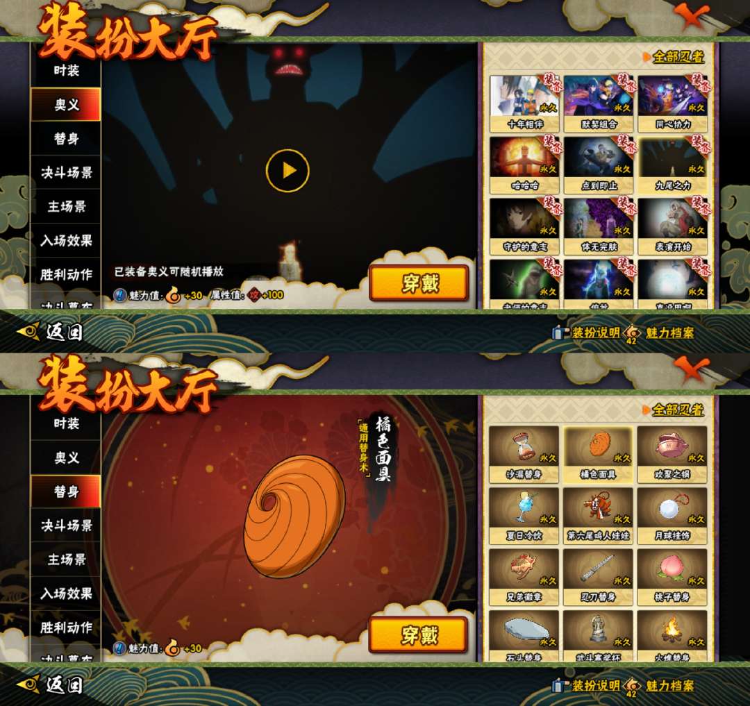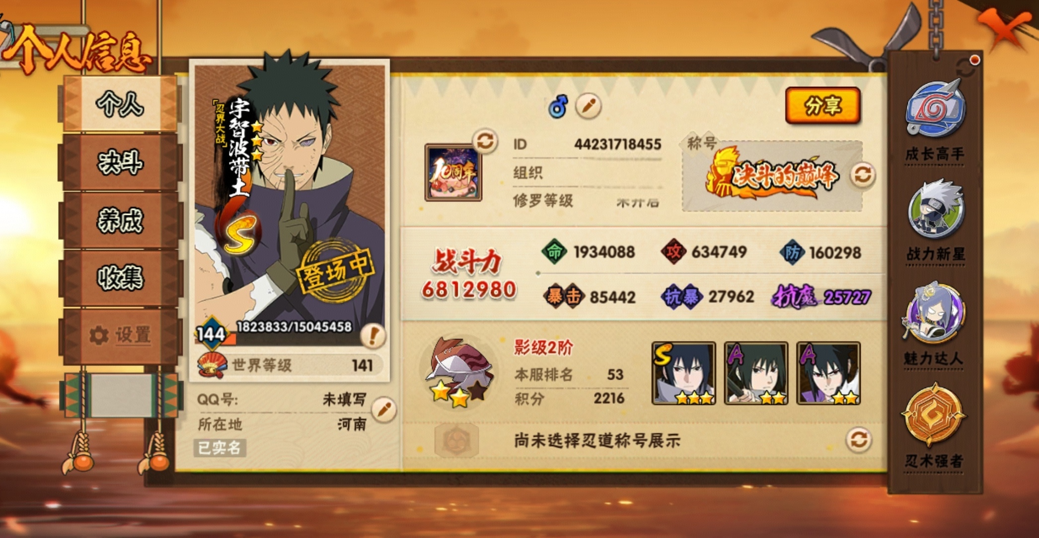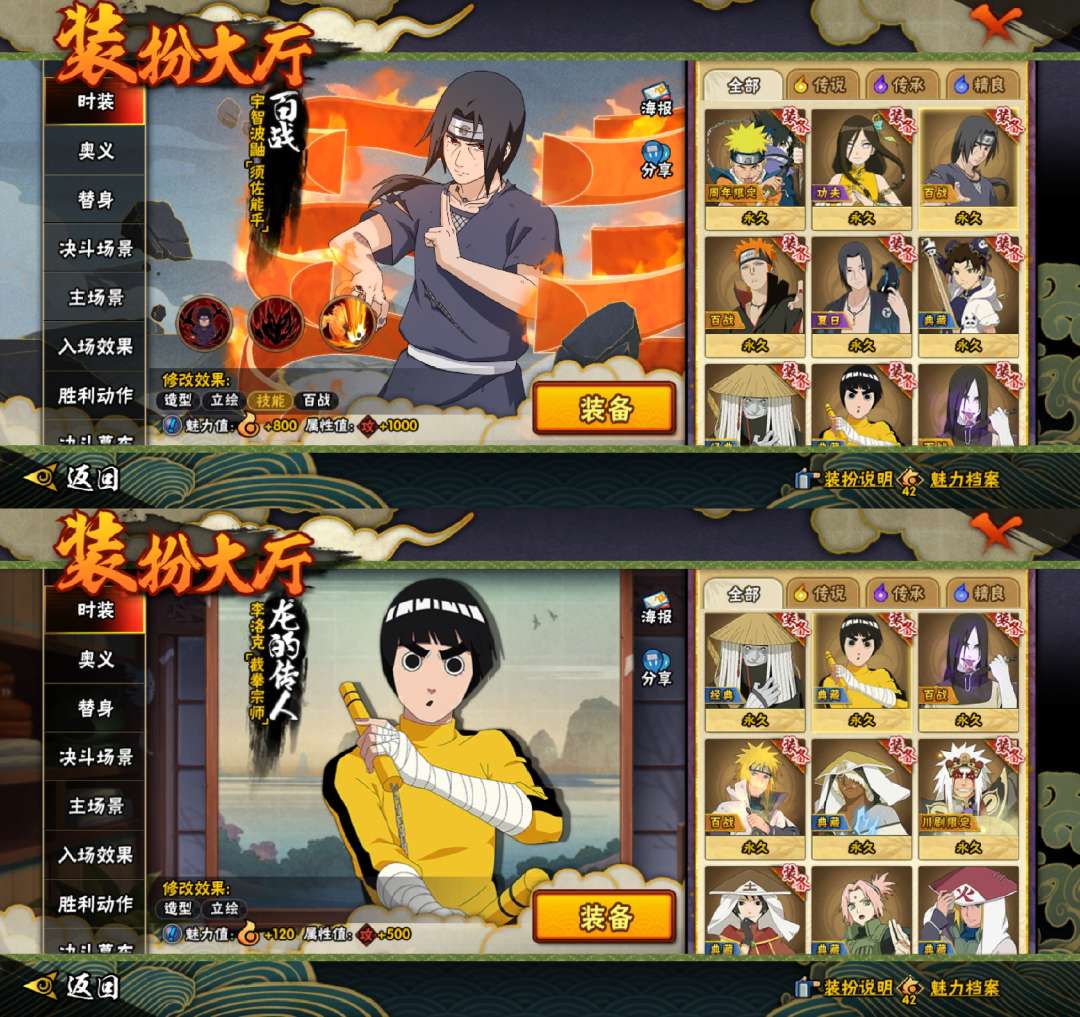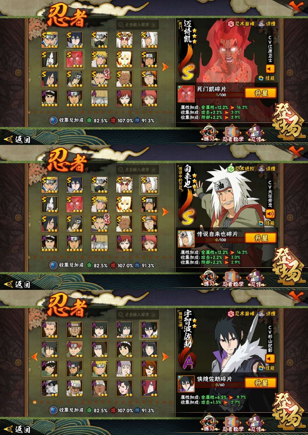 号里都是火影热门强势忍者,有忍战带土秽土柱间九喇嘛水门永恒佐助须佐卡卡西秽土解斑忍战雷影死门凯等