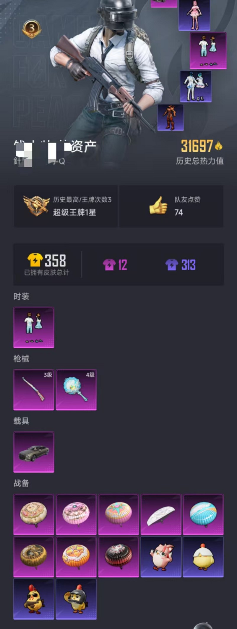483-【蜘蛛侠雅典娜1粉装2特效枪1载具可秒换绑】、安卓Q区-31697热力值-3印记-77套装-114枪皮、【1载具】、宾利飞驰(布罗德盖棕双色)【1稀有】、奇异狩猎者【1粉装】、仲夏莫吉托【2特效枪】、平底锅-仲夏莫吉托(4级)、Kar98K-巳巳如意(3级)【31热门】、M416-蓝色火焰、GROZA-彩虹符号、M762-暗夜鎏金、长空猛禽、虚音幻奏、甜心亚梦、牛气冲天、霓虹街区、妙红点点、懵萌河马、破蛋小黄鸡、军刀雅典娜、SS27特训、SS26特训、SS24特训、SS23特训、SS22