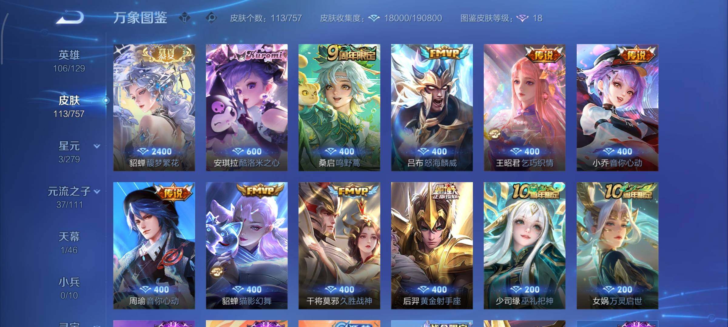 【精品推荐·馥梦繁花·酷洛米之心·乞巧织情·音你心动】【可二次】YXw10222-安卓WX-106英雄-113皮肤-8王者印记-220铭文-贵族积分2w【贵族7】【·1珍品无双·1珍品·星传说·8传说·1天幕·6按键】【因赛季更新游戏段付以上号为准!】
