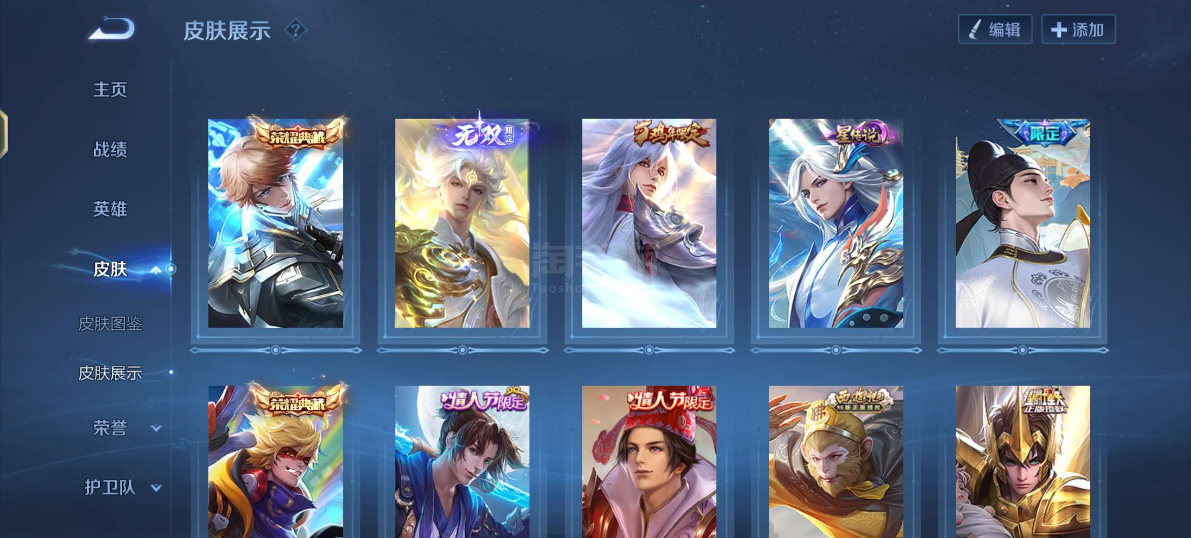 647-可二次【210皮肤2水晶1无双2星元9传说】安卓V区-120英雄-210皮肤【2水晶】 全息