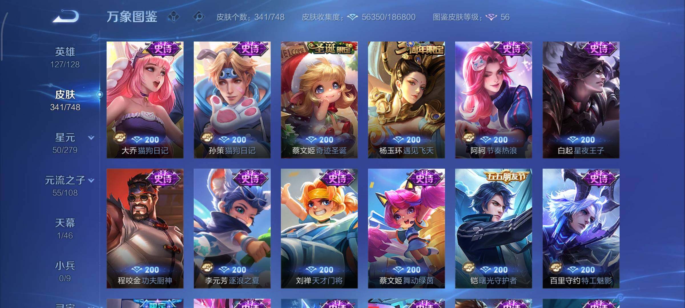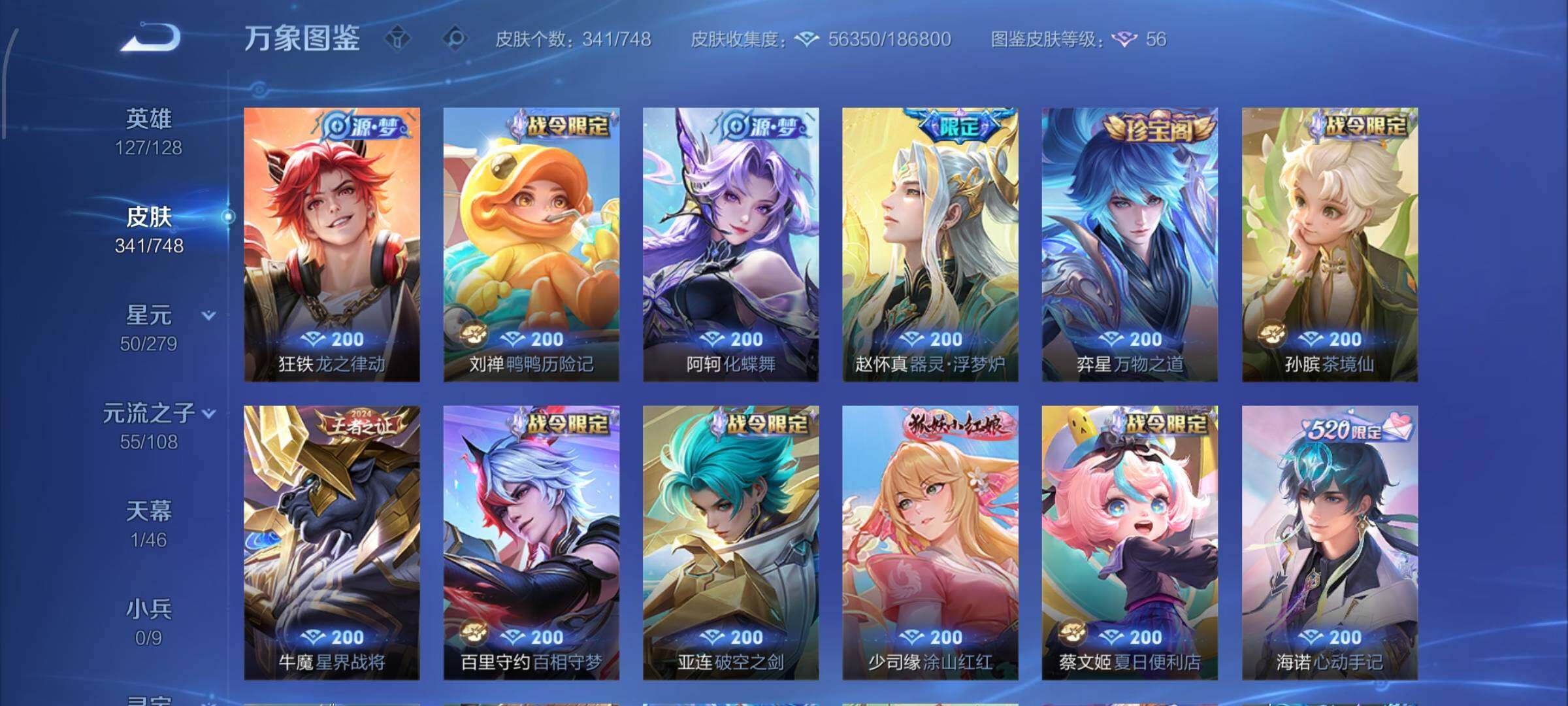 【精品女号·全皮西施·全皮杨玉环·全皮大乔·全皮嫦娥·全皮朵莉亚·龙年全限定·幻阙歌·最初的交响·时之魔女·金色仲夏夜·山海琳琅生·挚爱花嫁·安琪拉追逃游戏·遇见胡旋·鸿兔大展天幕·可二次】YXw9563-安卓Q-127英雄-341皮肤-12王者印记-120铭文-贵族积分9w【贵族8】【2典藏·1无双·1珍品·1星传说·25传说·1天幕·12按键】【因赛季更新游戏