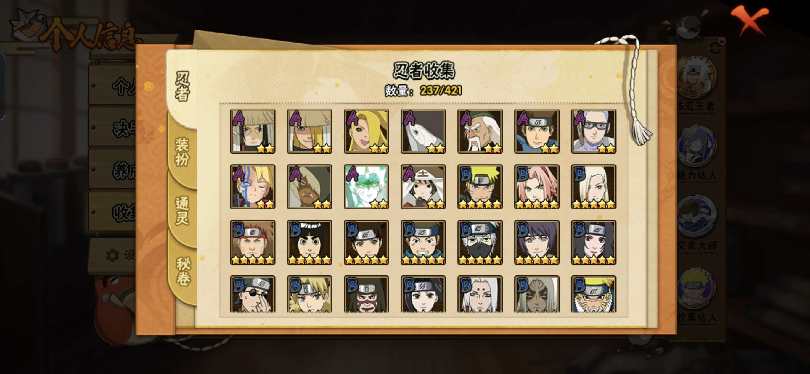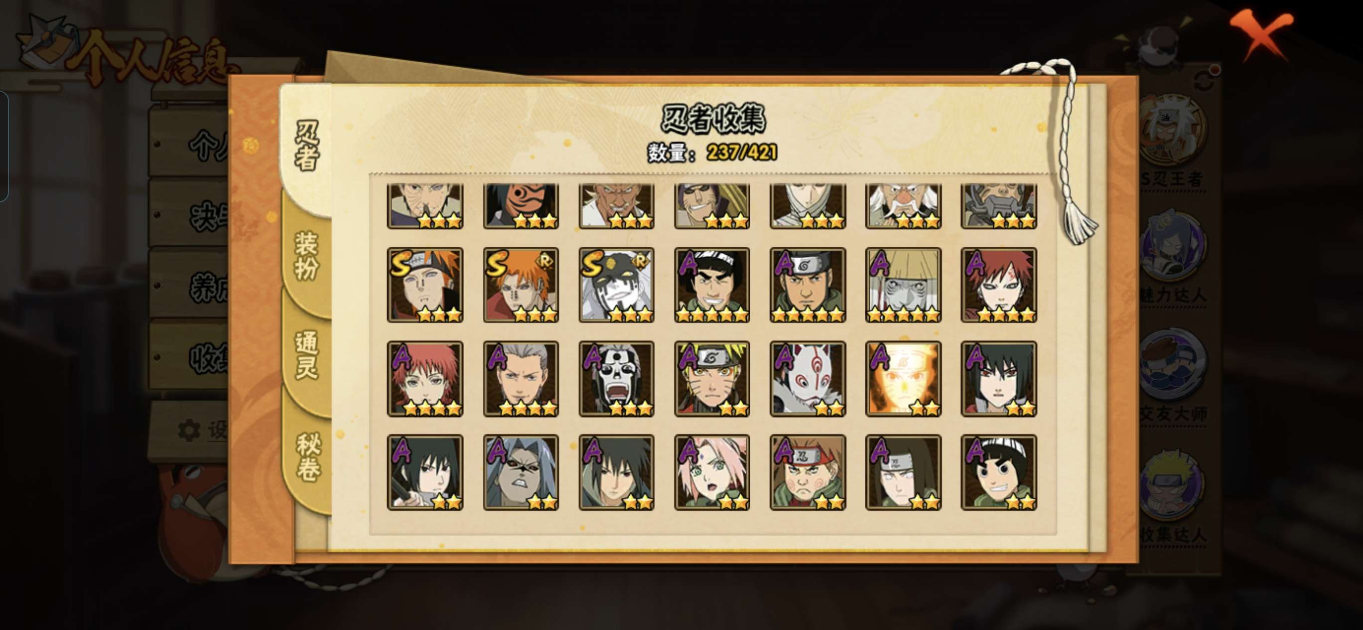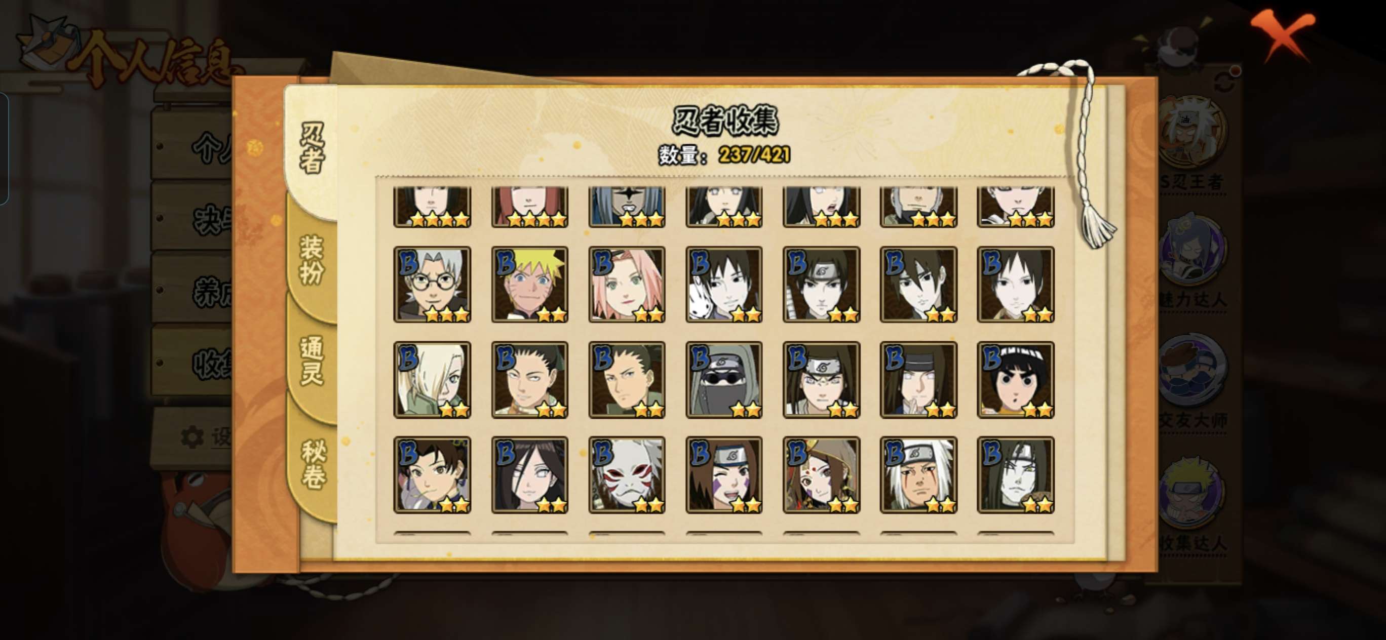 性价比成品号,忍者全面,稀有秘卷,多忍法帖S-这个QQ有会员,然后老三代有80片