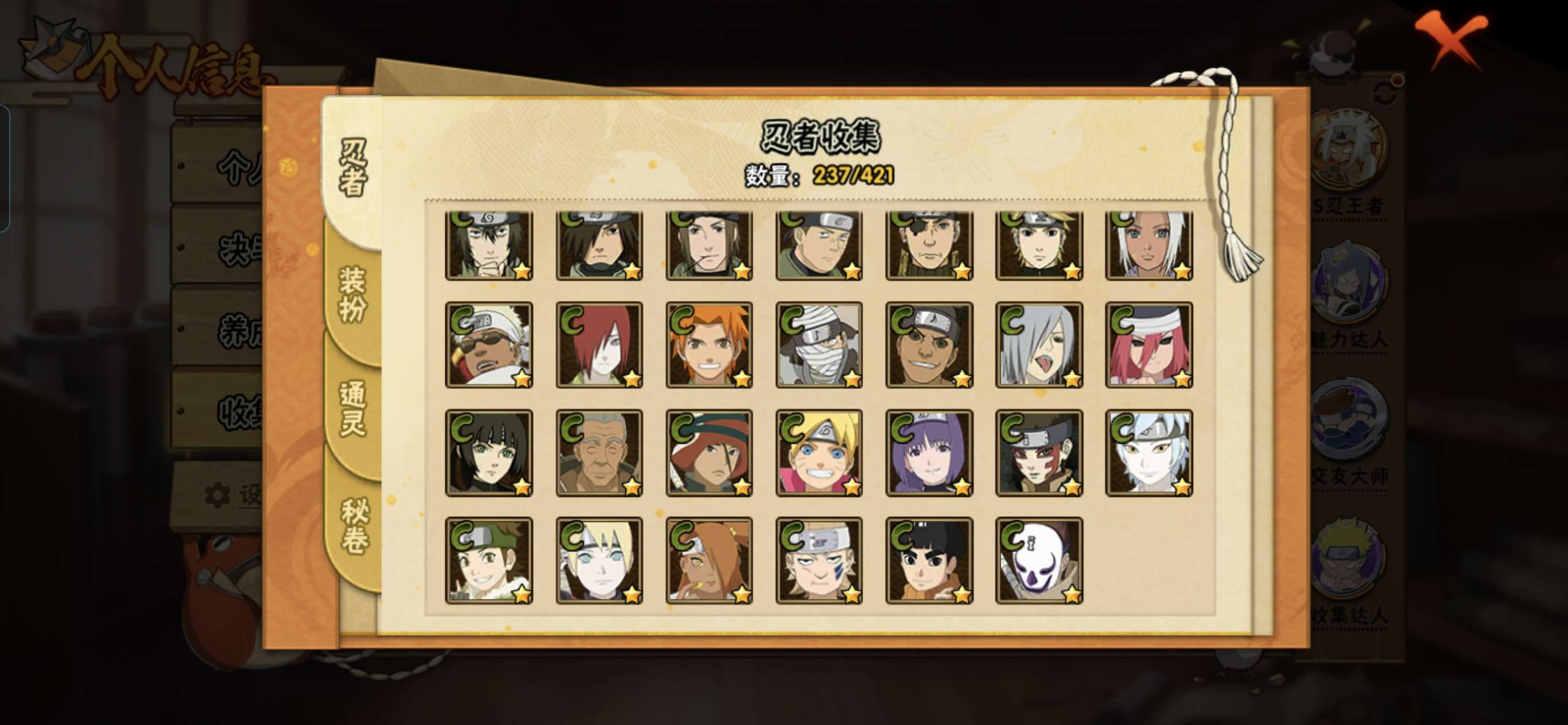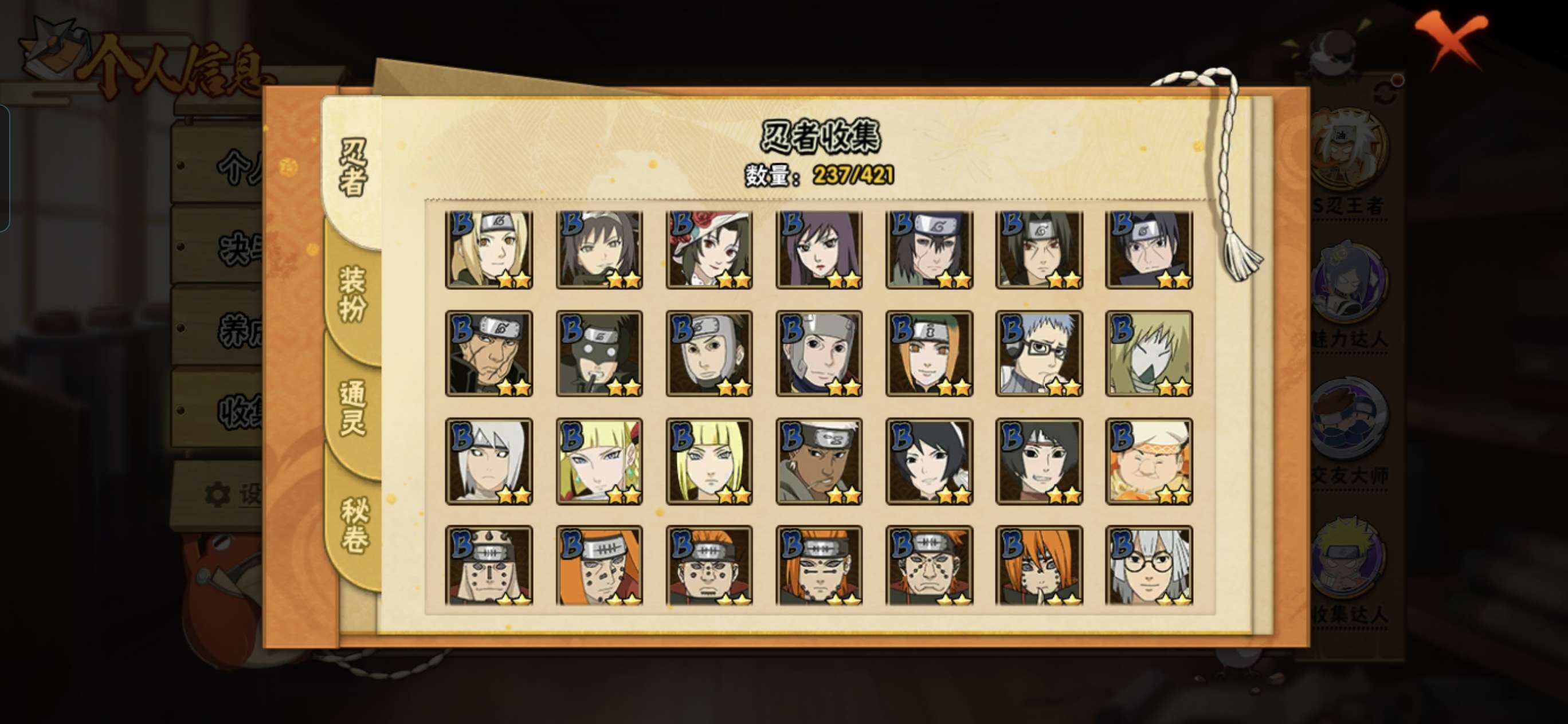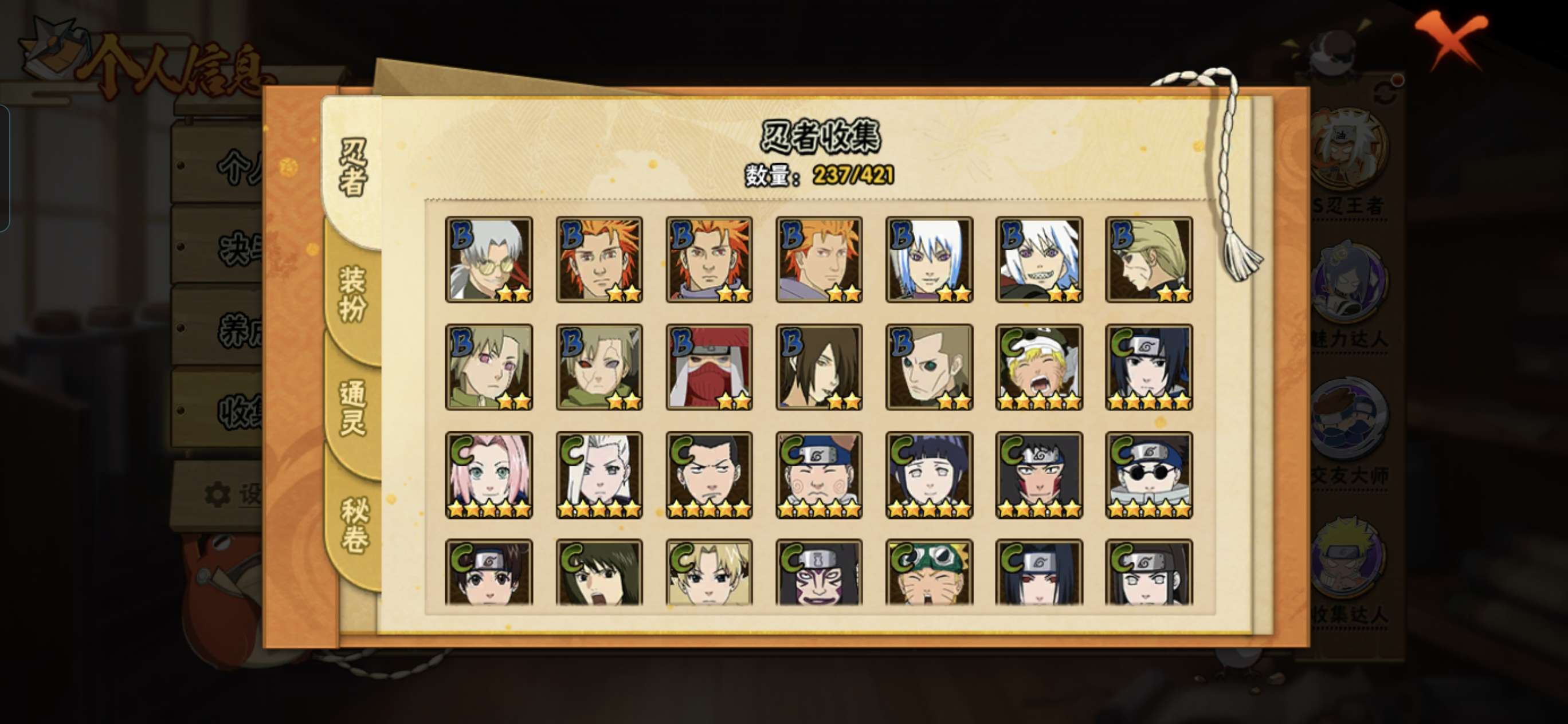 性价比成品号,忍者全面,稀有秘卷,多忍法帖S-这个QQ有会员,然后老三代有80片