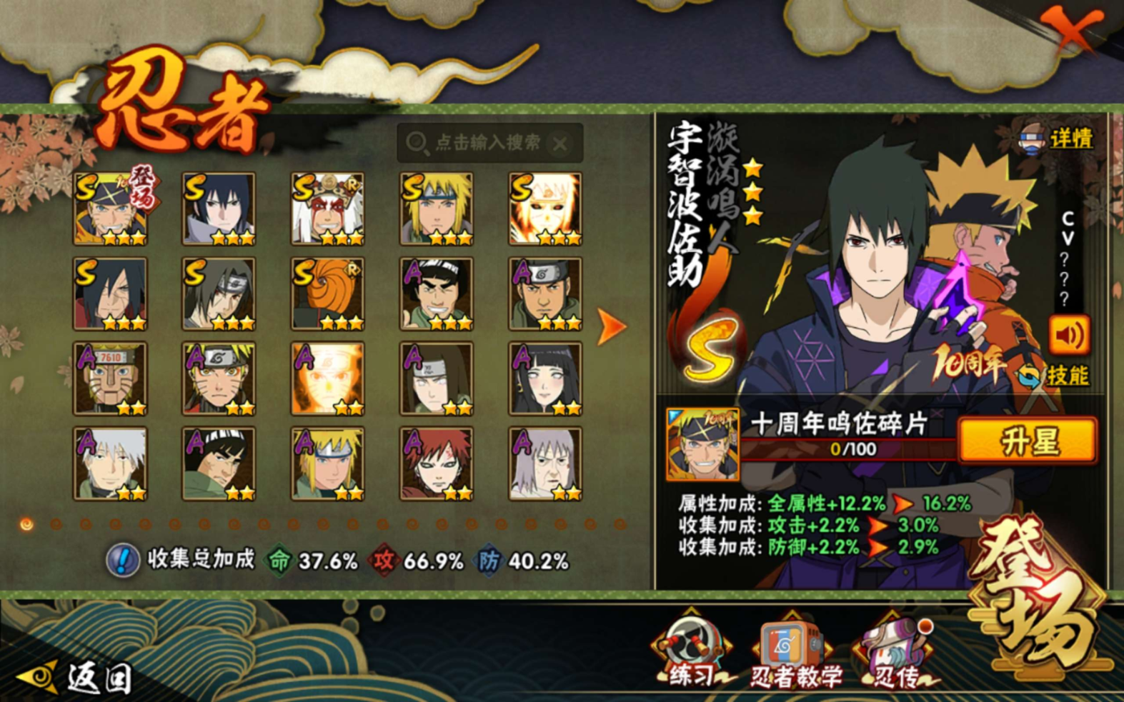 安卓QQ-可以二次-v9-宇智波鼬「须佐能乎」-宇智波斑「五影会谈」-宇智波佐助「永恒万花筒」-波风水门「九喇嘛连结」-宇智波鼬「夏日限定」-卑留呼「火之意志继承者」-大野木「侠隐江湖」S忍者数:8- A忍者数:27