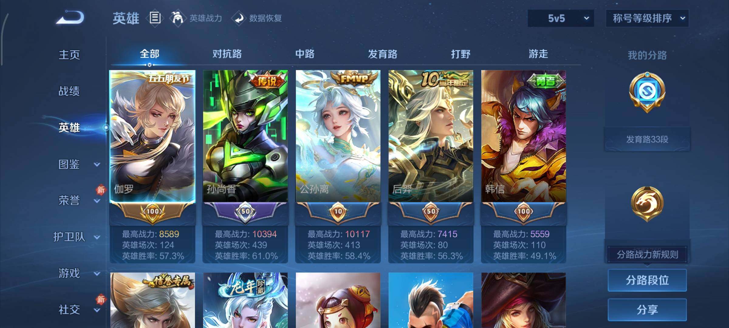 可换绑【发育路33段 银标万战孙尚香 铜标万战公孙离 金标伽罗】5按键,1星传