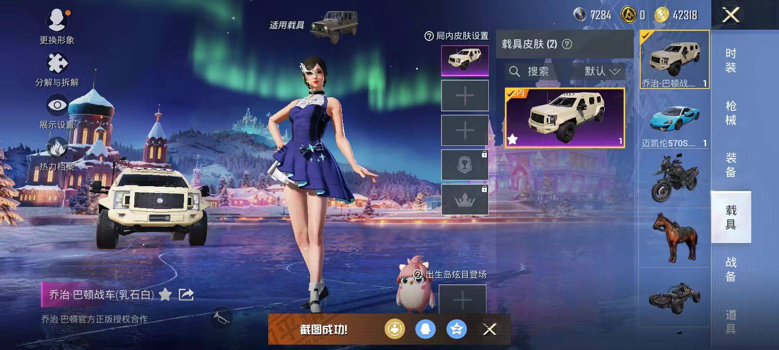 【粉色载具】:乔治巴顿战车(乳石白),迈凯伦570S(天际蓝