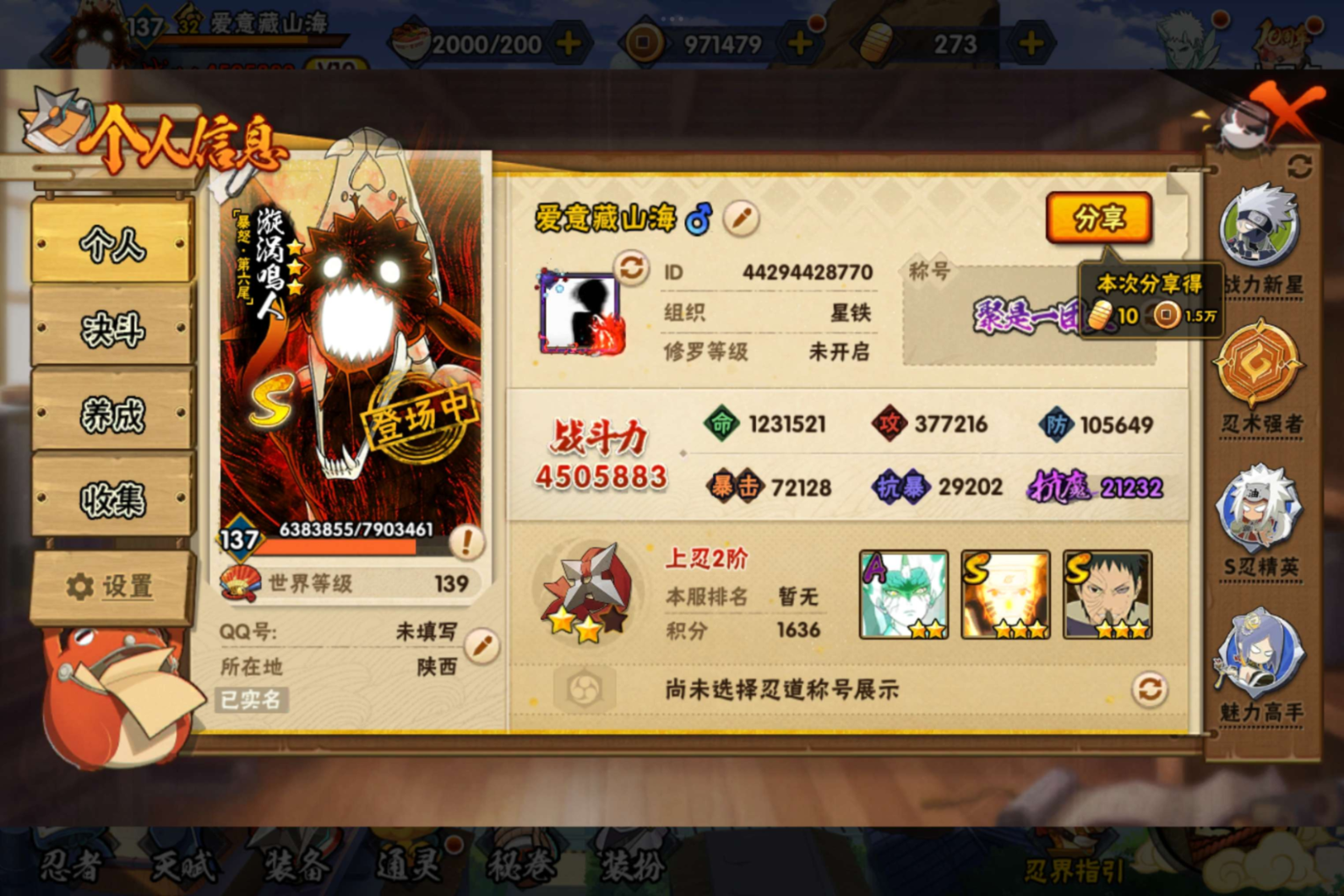 安卓QQ-可二次-S忍者数:11- A忍者数:24【S级忍