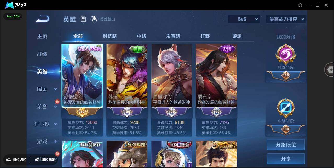 【W4888】41段打野1金标历史万战猴子至尊宝.9千分韩信-凤求凰.FMVP