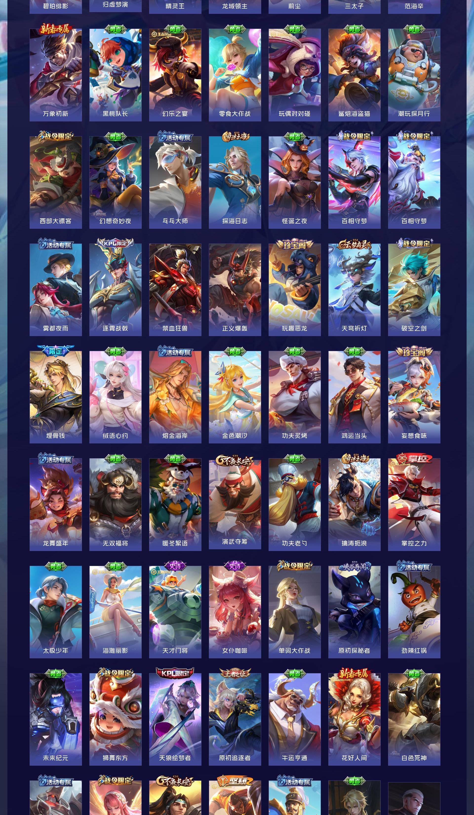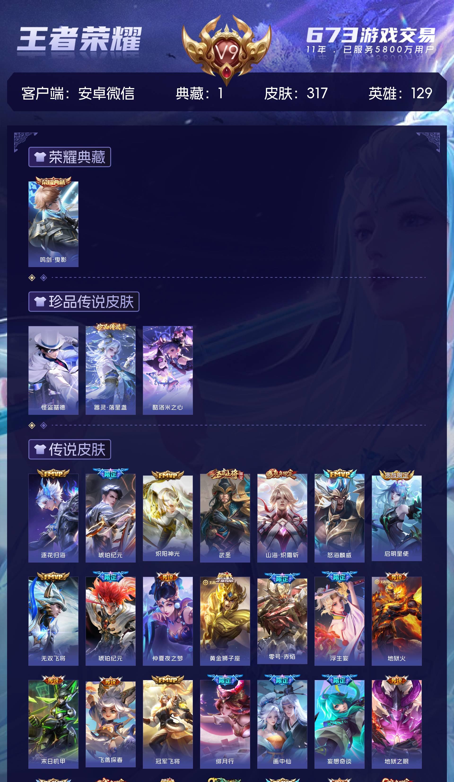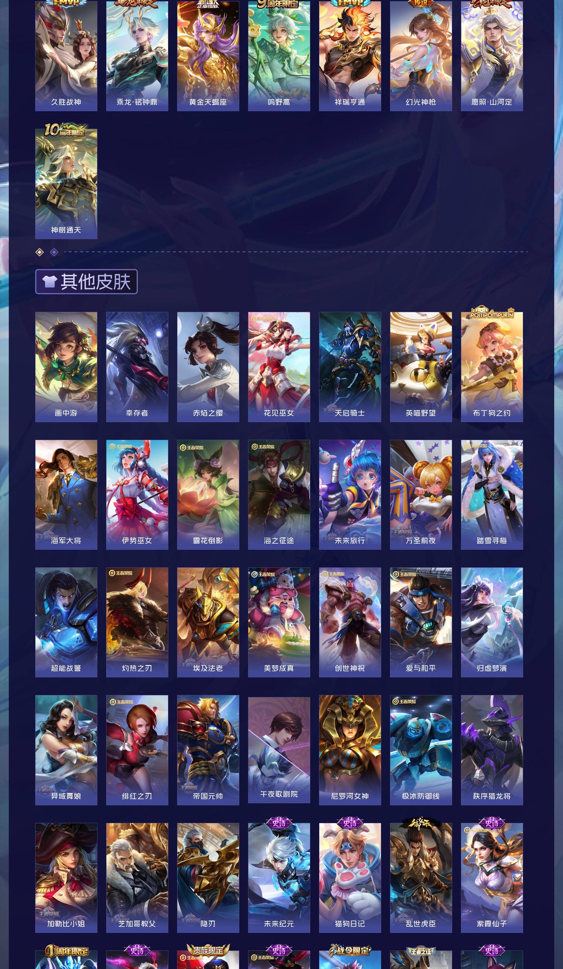 皮肤317 英雄129 至圣王者 荣耀典藏1 珍品传说3 传说29 其他皮肤290-