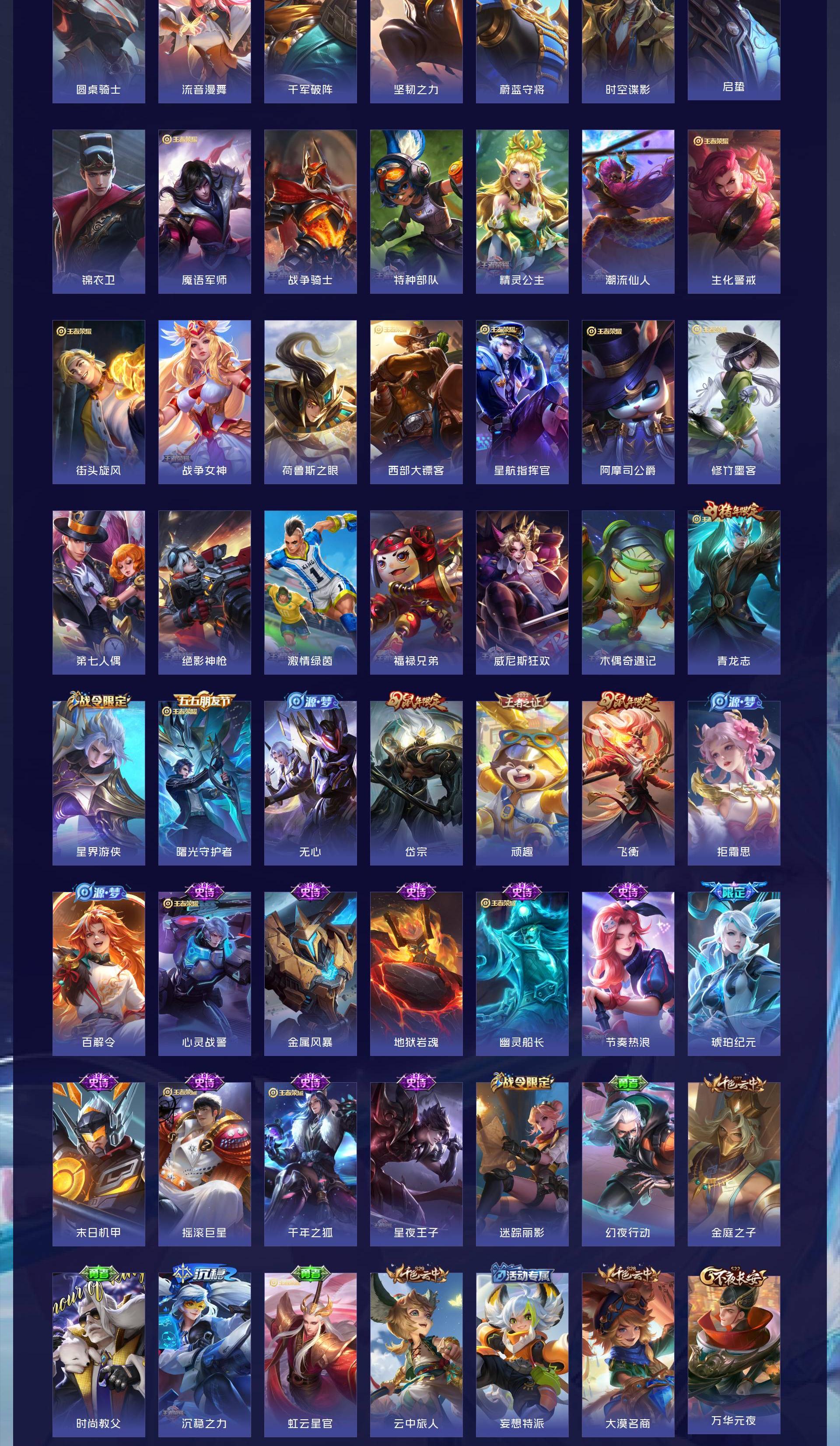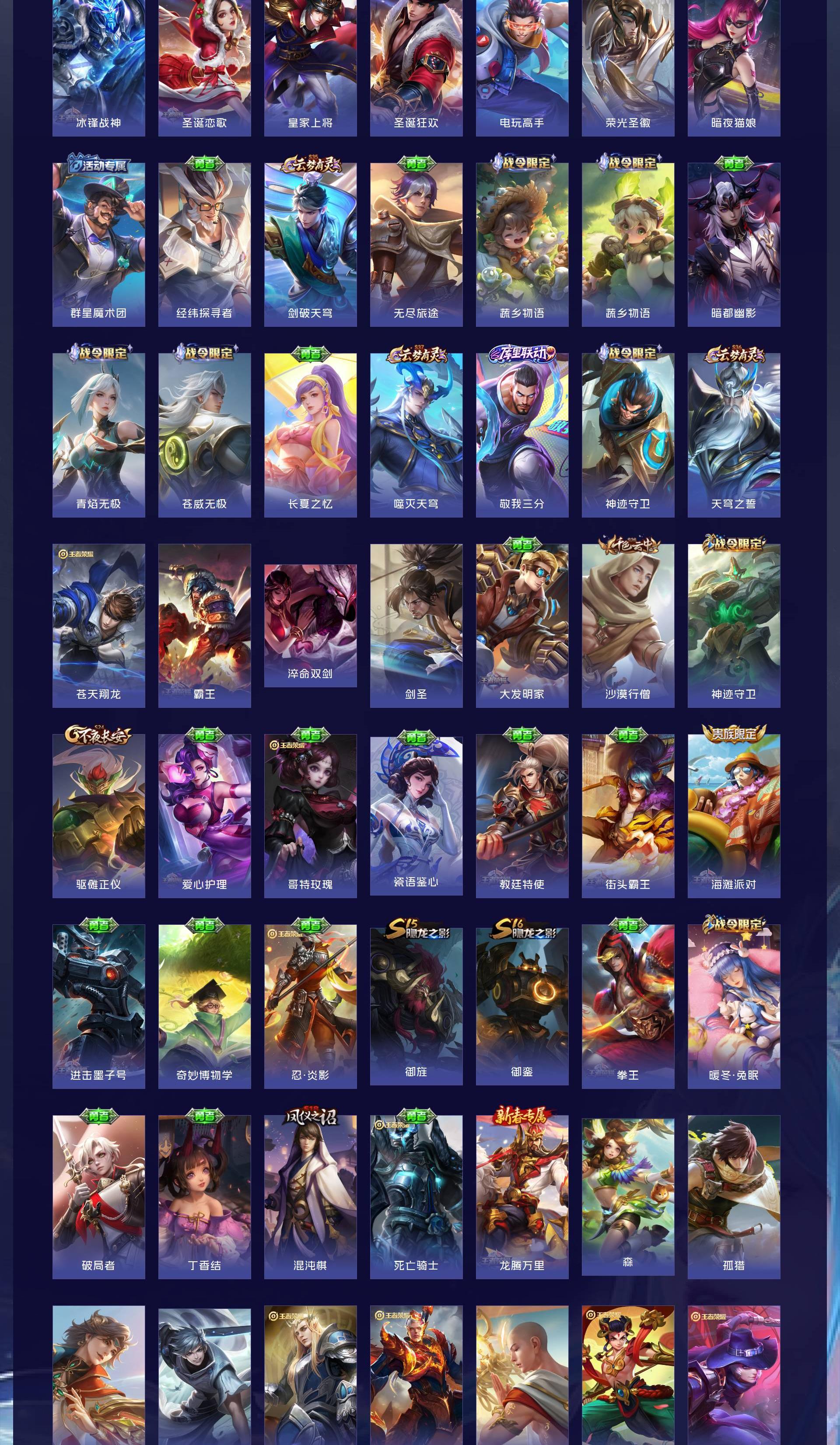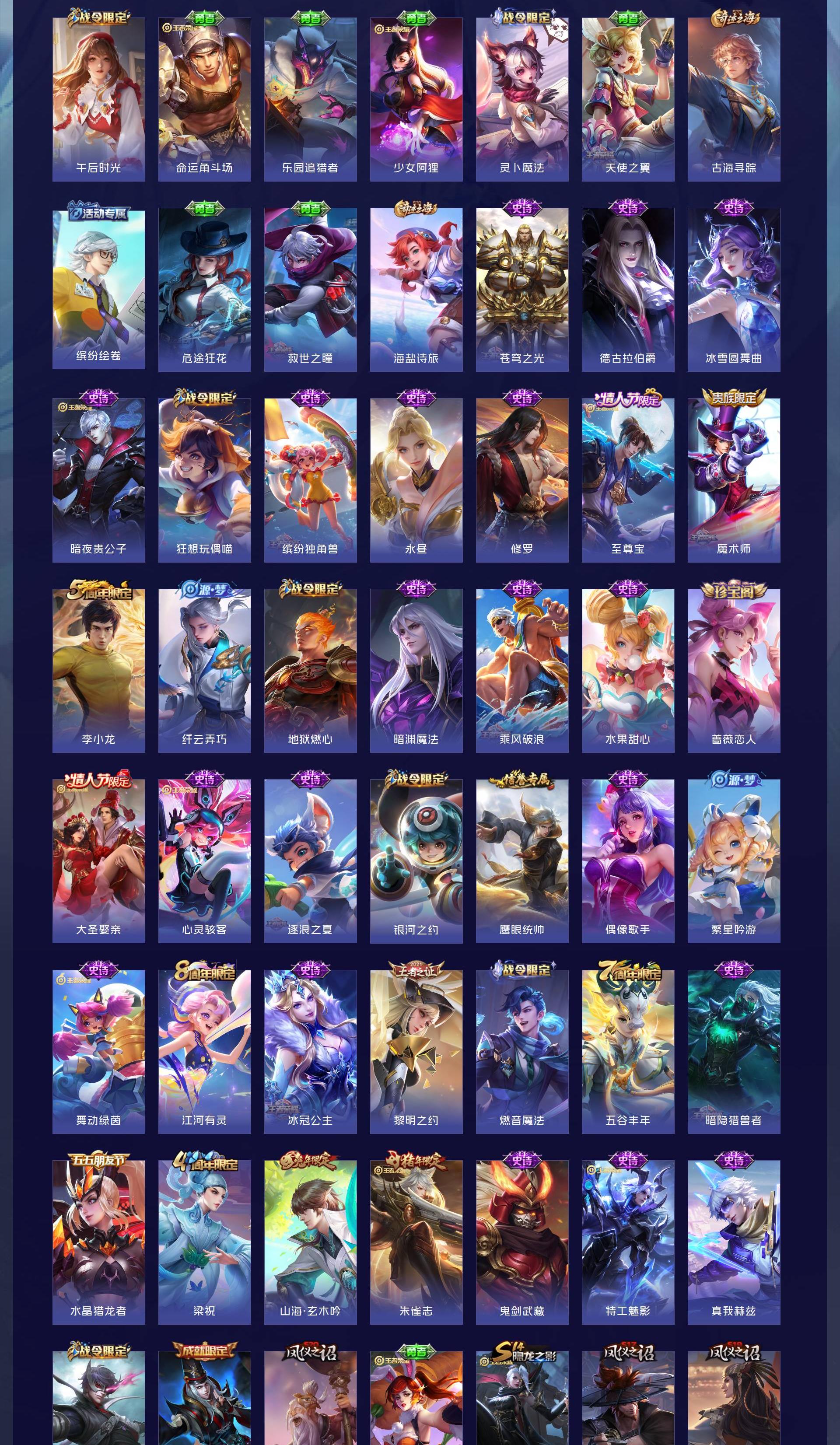 皮肤317 英雄129 至圣王者 荣耀典藏1 珍品传说3 传说29 其他皮肤290-