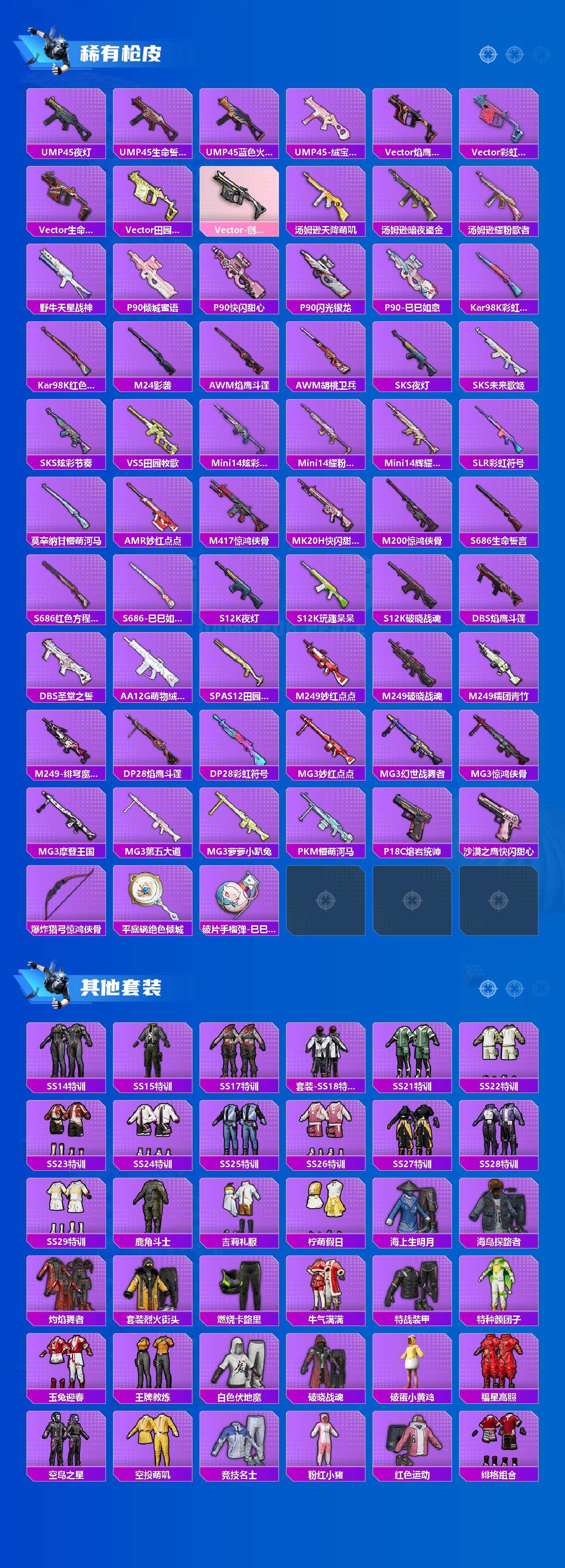 【粉色枪皮等级】:AKM-梦之光华(六级),M416-风花雪月(六级),GROZA-镜光银凌(五级),M762-青锋波束(五级),UMP45