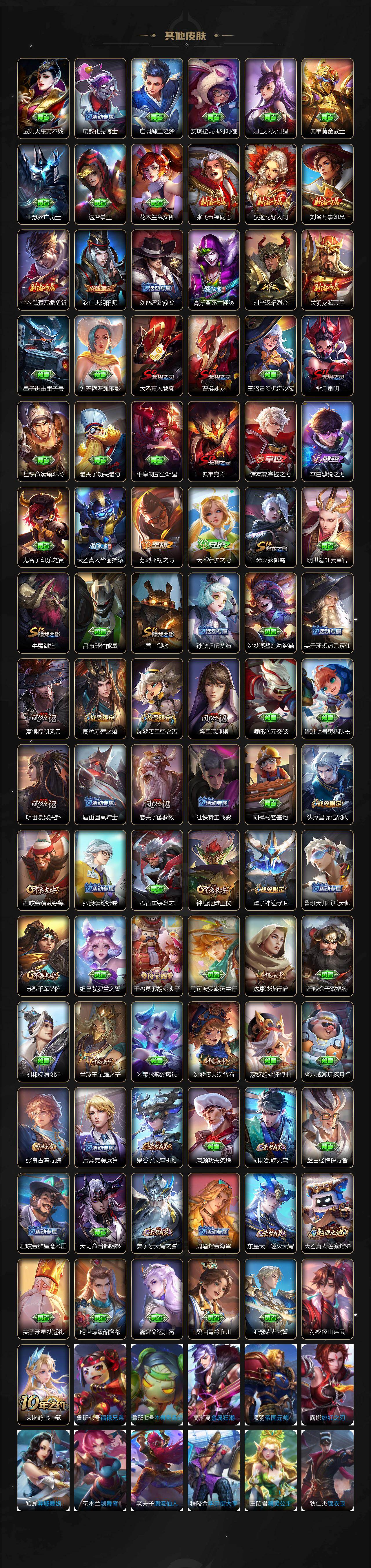 【传说皮肤】:女娲愿照千秋盛,澜愿照九州拓,云缨幻光神枪,马超无双飞将,虞姬启明星使,伽罗太华,干将莫邪久胜战神,虞姬云霓雀翎,达摩黄金狮子座,貂蝉仲夏夜之梦,孙尚香末日机甲